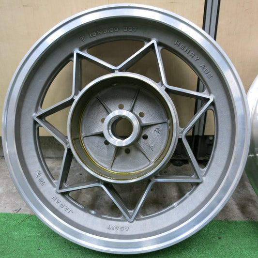 美品 レア 2本セット★HENRY ABE セブンスター ASAHI T16×3.00 DOT GS750 16インチ ホイール リア ヘンリーアベ★4100105ナホ