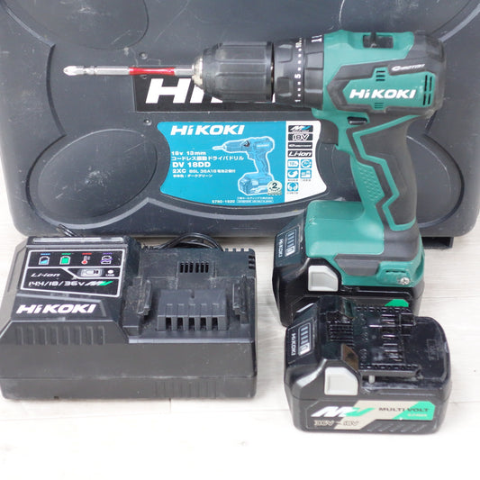 [送料無料] キレイ!バッテリー2個◆ハイコーキ HiKOKI 13mm コードレス 振動 ドライバ ドリル DV18DD DC18V ケース 充電器 付き 電動 工具◆