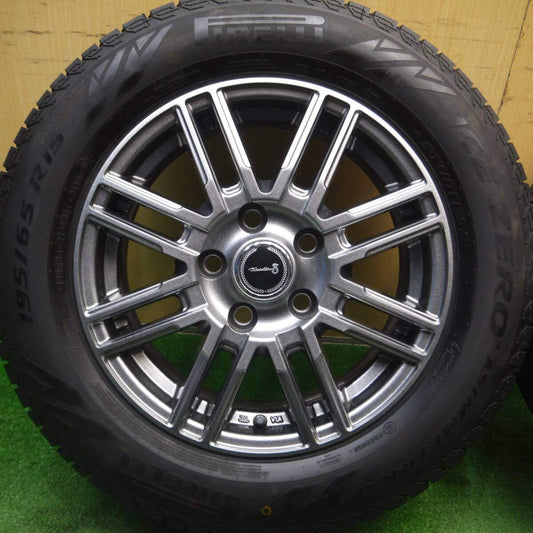 バリ溝!22年!キレイ!9.5分以上★スタッドレス 195/65R15 ピレリ アイスゼロ アシンメトリコ Tiradoδ ティラード 15インチ PCD114.3/5H★5021203Hス