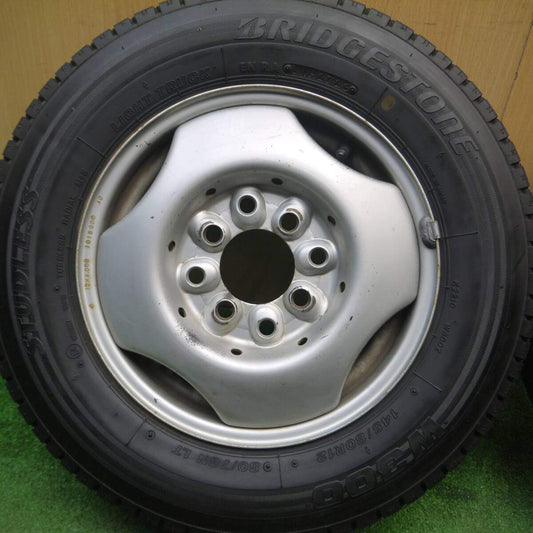 バリ溝!23年!9分★スタッドレス 145/80R12 80/78N ブリヂストン W300 スチール ホイール 12インチ PCD100 114.3/4H マルチ★5022607Hス