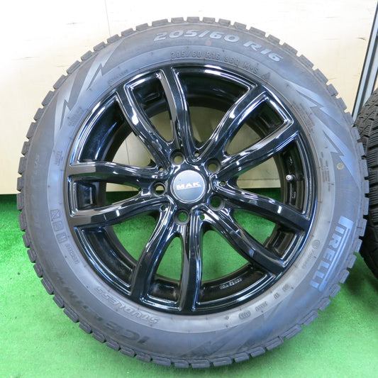 *送料無料* バリ溝!8.5分★BMW 等 MAK 205/60R16 スタッドレス ピレリ アイスアシンメトリコ プラス 16インチ PCD112/5H★4061401ナス