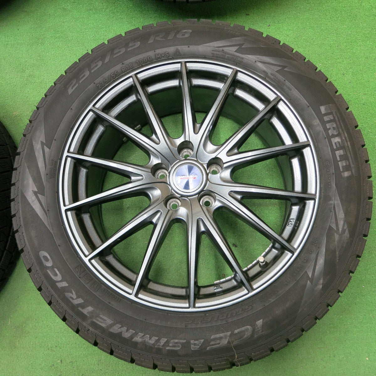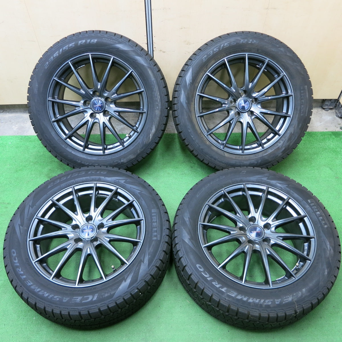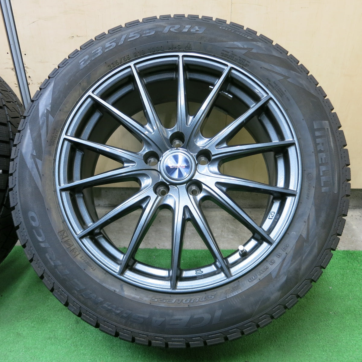 [送料無料] バリ溝!20年!綺麗!9.5分★スタッドレス 235/55R18 ピレリ アイスアシンメトリコ VELVA SPORTZ ヴェルヴァ 18インチ PCD114.3/5H★4071002ナス |