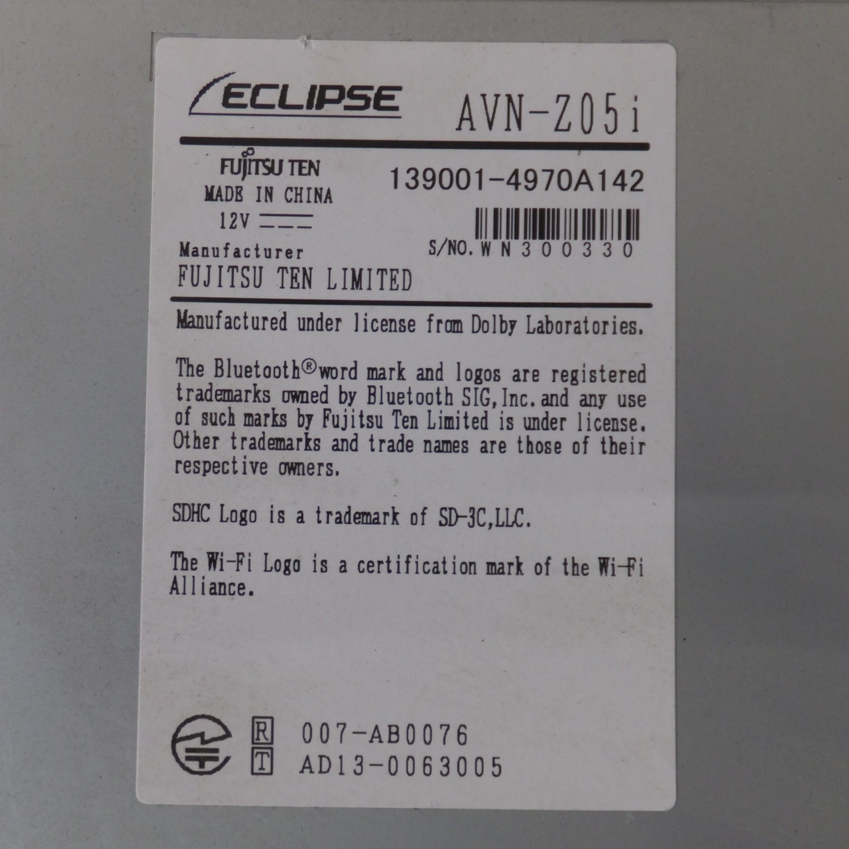 | 型番 | AVN-Z05i |