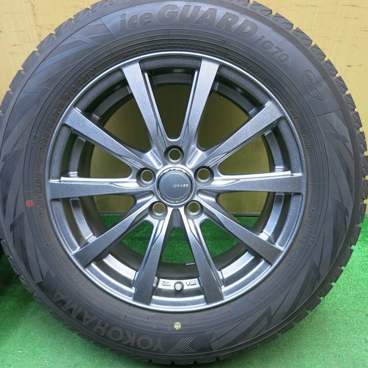 バリ溝!21年!キレイ!8.5分★プリウス 等 195/65R15 スタッドレス ヨコハマ アイスガード iG70 GRASS グラス 15インチ PCD100/5H★5040502TNス