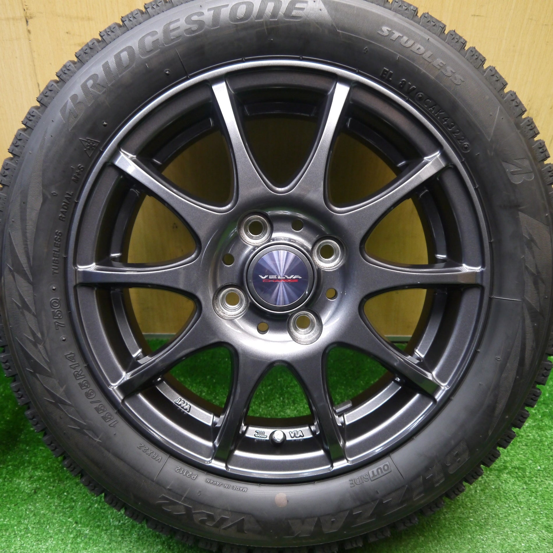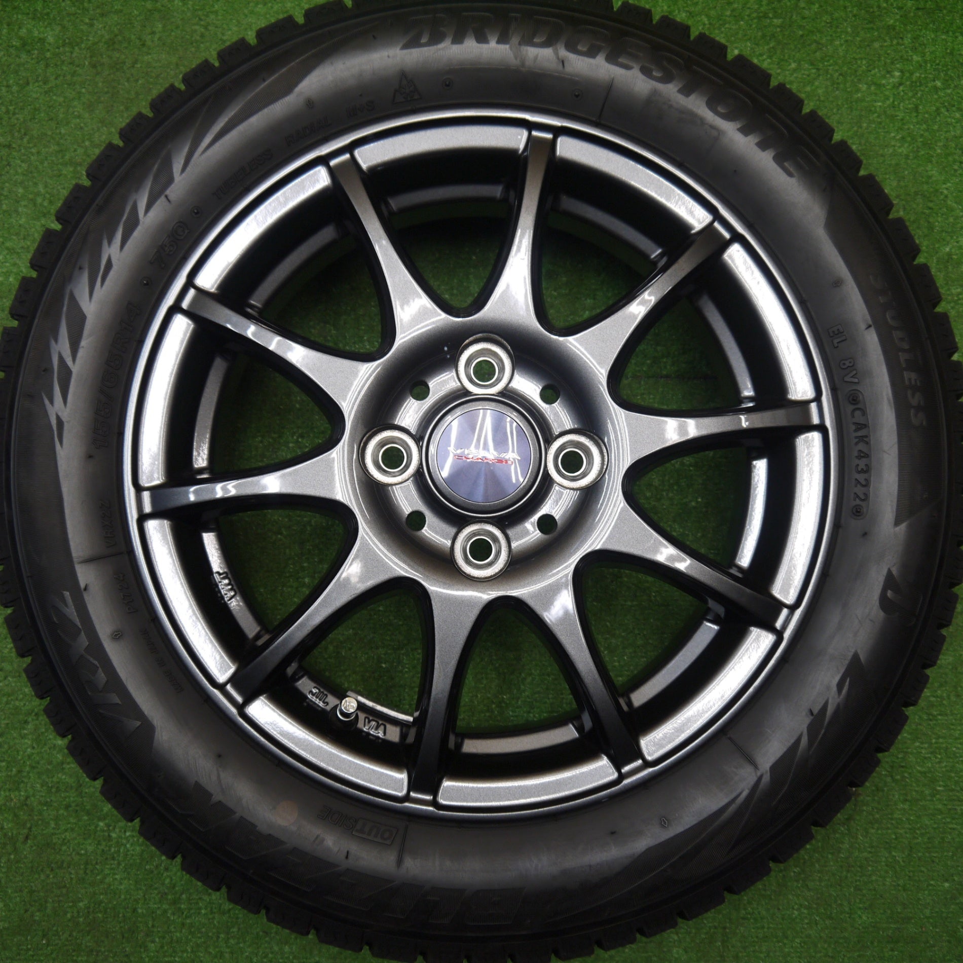 バリ溝!22年!キレイ!ほぼ10分★スタッドレス 155/65R14 ブリヂストン ブリザック VRX2 VELVA CHARGE ヴェルヴァ 14インチ PCD100/4H★5110708Hス