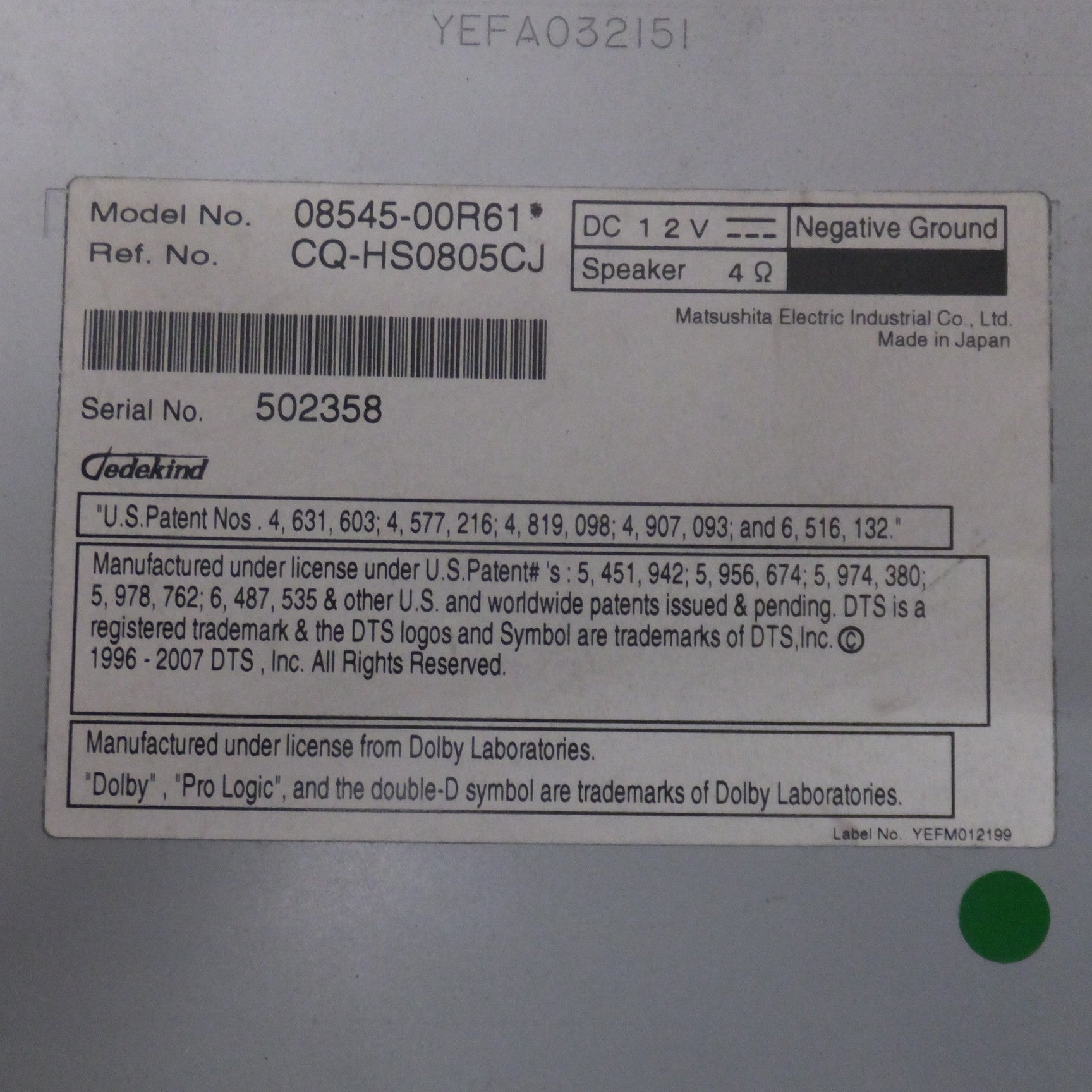 [送料無料] ★松下製 トヨタ 純正 スタンダード MDナビゲーション NH3N-W58 08545-00R61[11]★