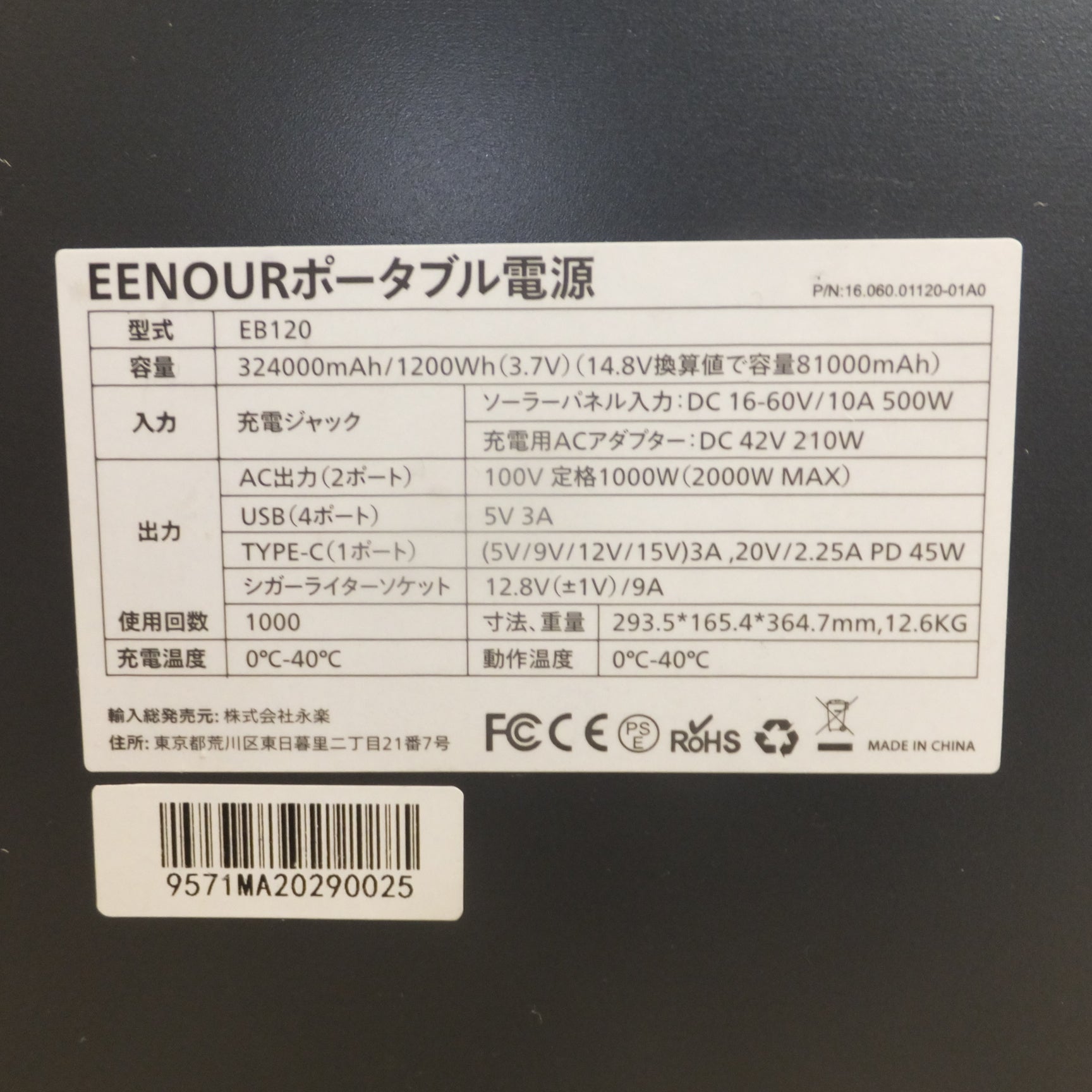 [送料無料]美品★イーノウ EENOUR ポータブル電源 EB120 324000mAh/1200Wh(3.7V)★ |