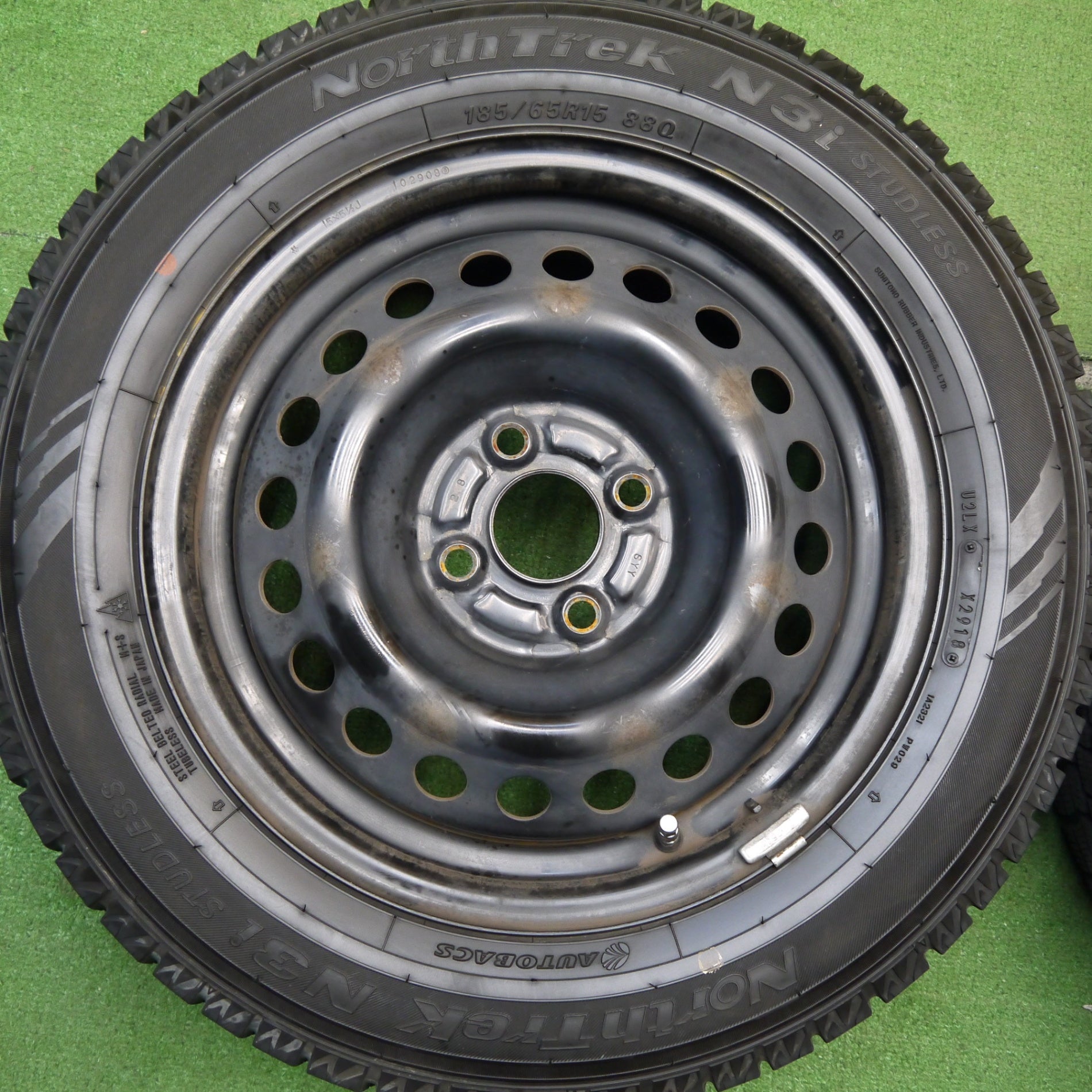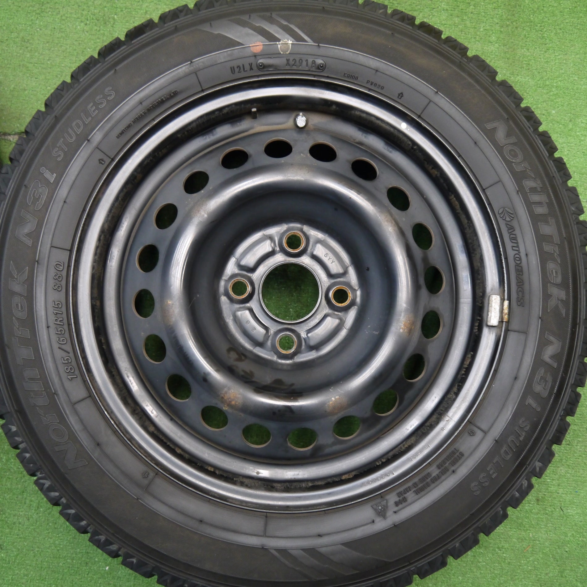 バリ溝!9分★スタッドレス 185/65R15 オートバックス ノーストレック N3i スチール ホイール 15インチ PCD100/4H★5042308Hス