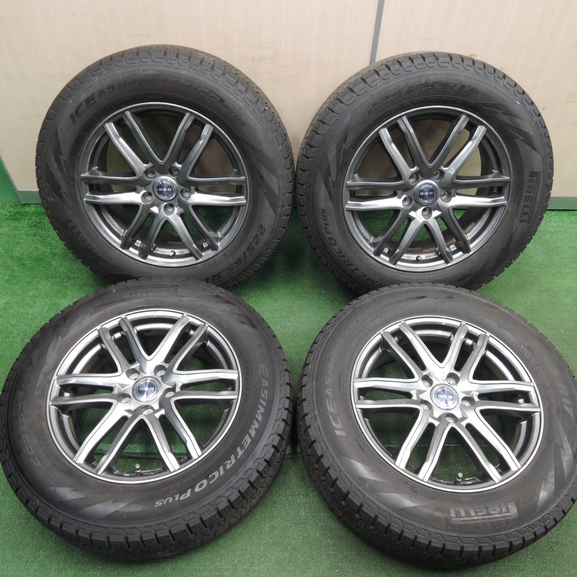[送料無料]バリ溝!キレイ!9分★スタッドレス 225/65R17 ピレリ アイスアシンメトリコ プラス SG-E 17インチ PCD114.3/5H★4012702HAス |
