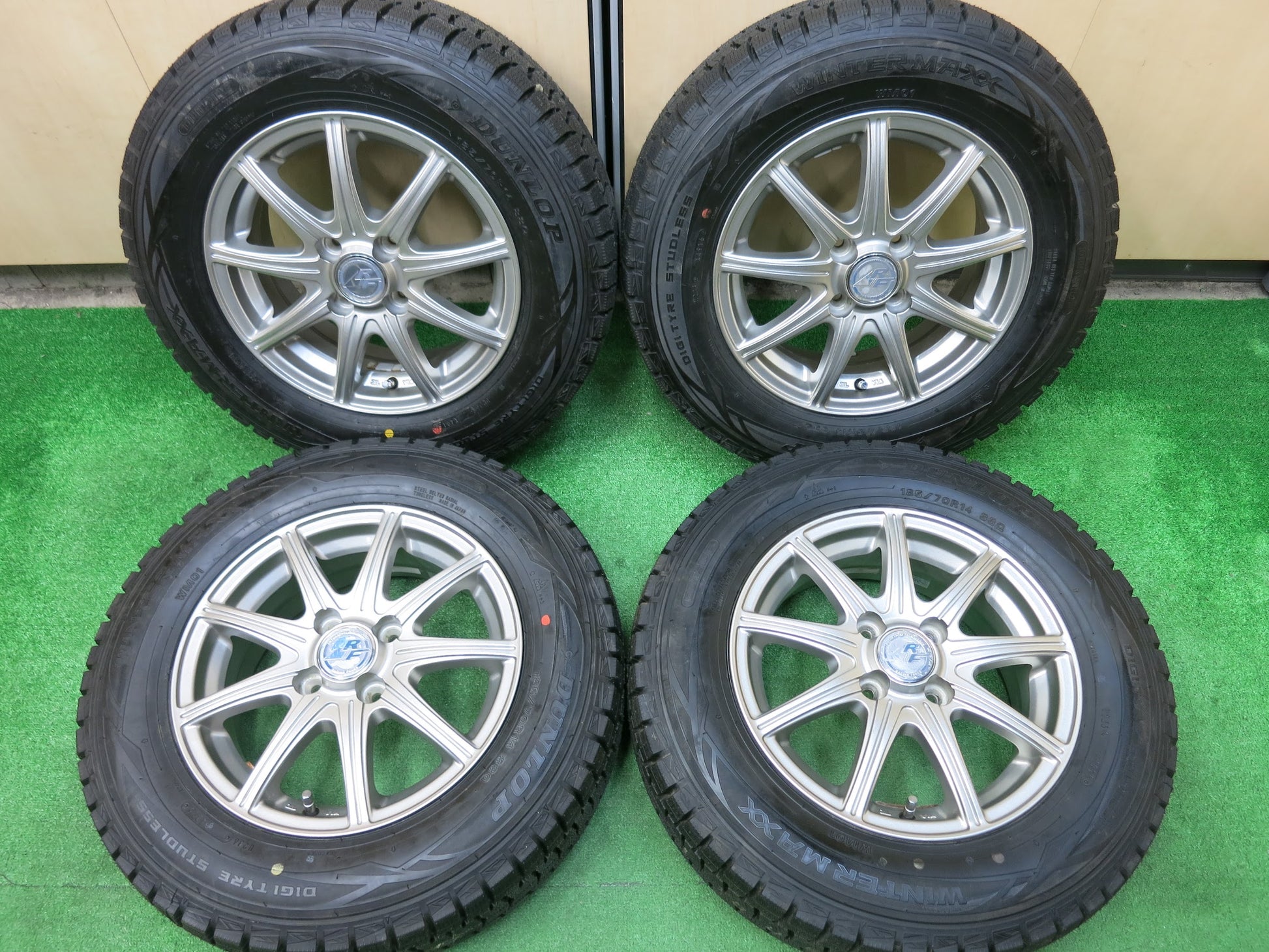 [送料無料]タイヤほぼ未使用!キレイ★スタッドレス 185/70R14 ダンロップ ウインターマックス WM01 RACING FORCE RF 14インチ PCD100/4H★2122808ヒス |