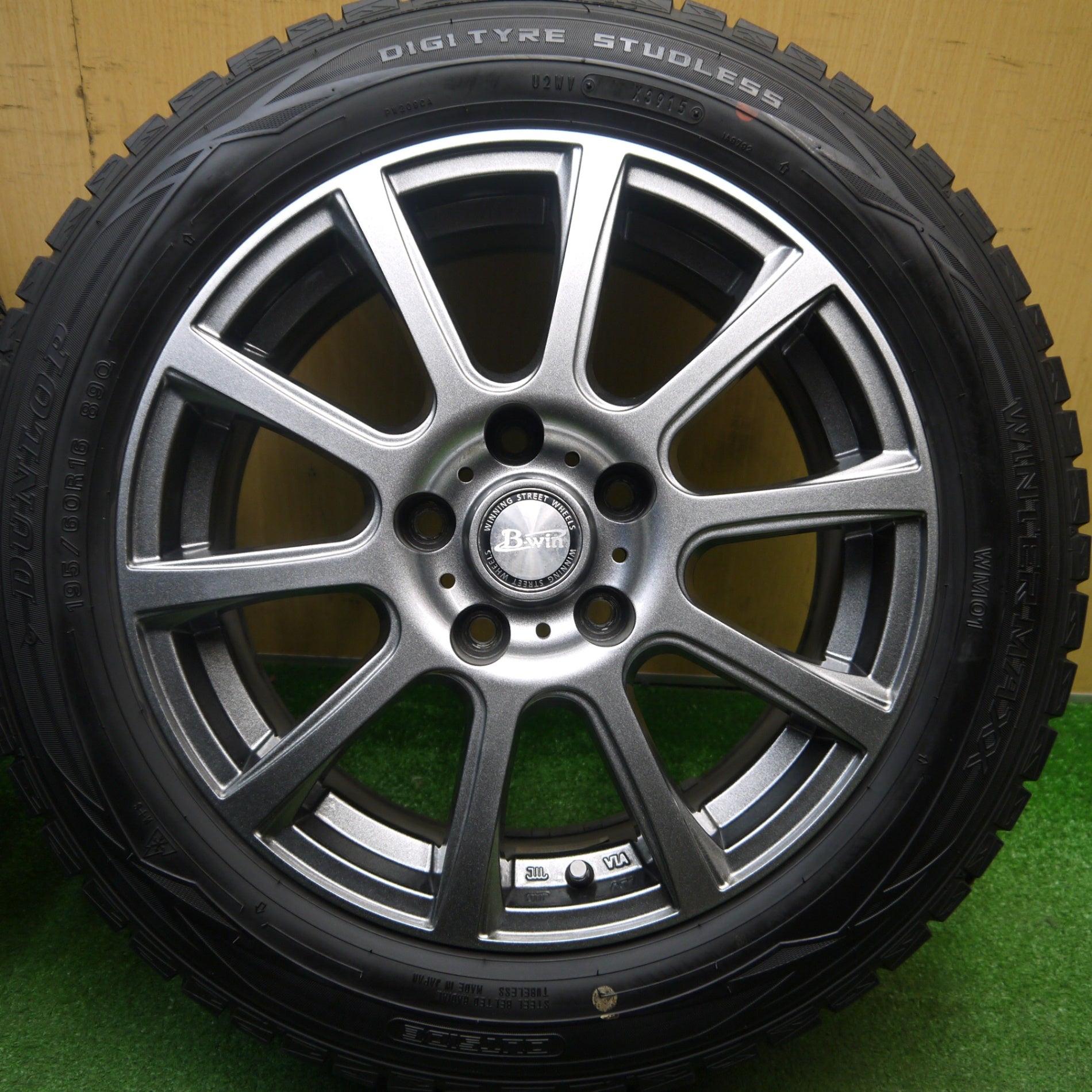 バリ溝!キレイ!8.5分★スタッドレス 195/60R16 ダンロップ ウインターマックス WM01 B-win 社外 アルミ 16インチ PCD114.3/5H★6012602Hス