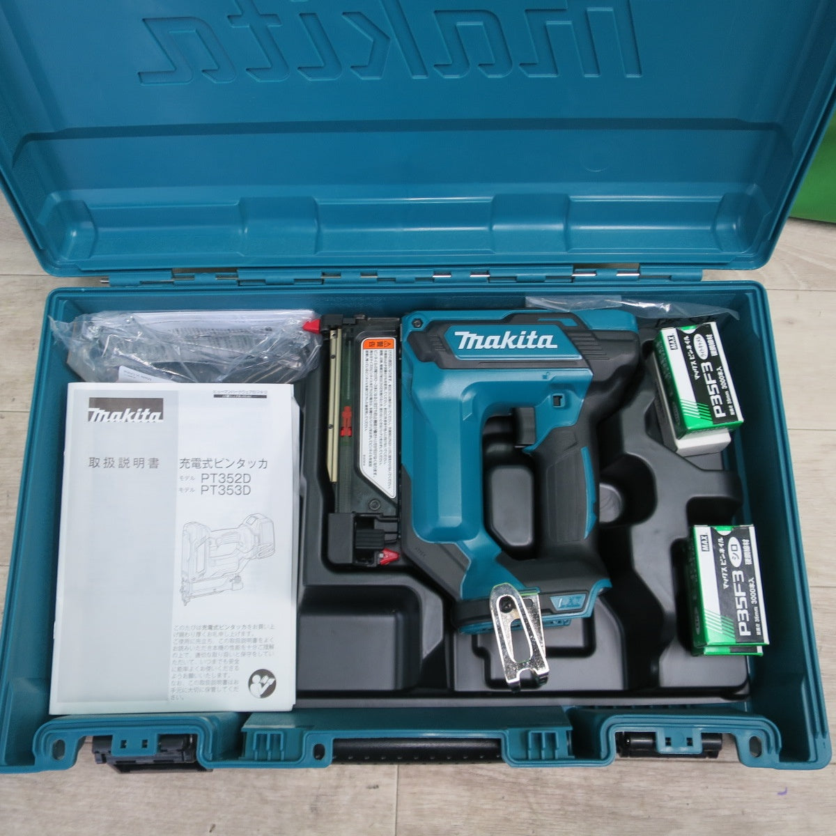 [送料無料] 美品!付属品付き☆マキタ 充電式 ピンタッカ 35mm 18V PT353DZK ケース ピンネイル 付き 電動 工具☆ |