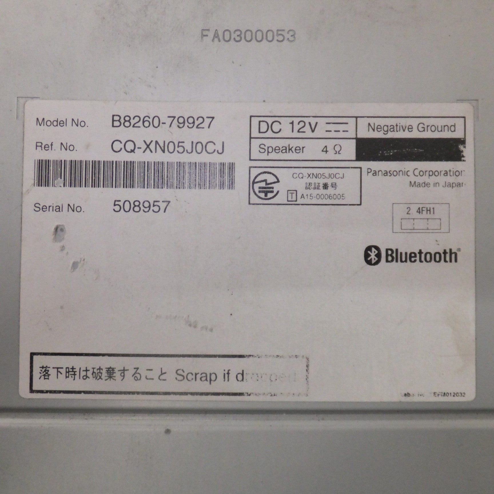 通電しなかったため、ジャンク品となります。 |