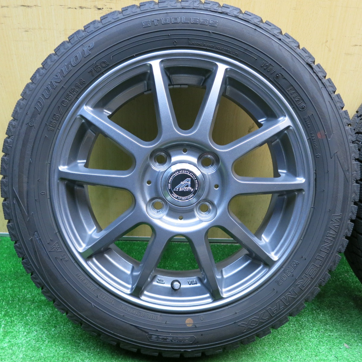 バリ溝!21年!キレイ!9.5分★スタッドレス 155/65R14 ダンロップ ウインターマックス WM02 AZ SPORTS AZスポーツ 14インチ PCD100/4H★5121303HAス