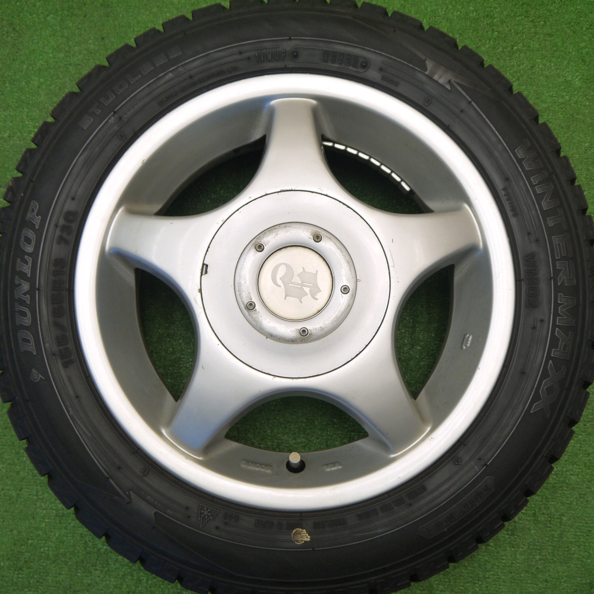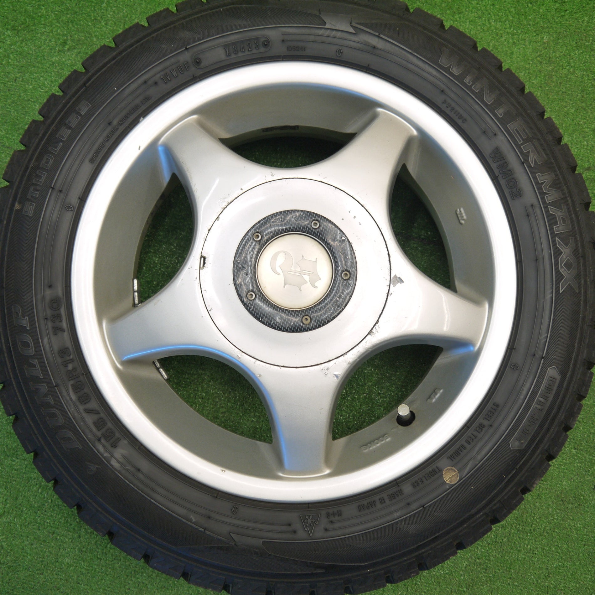 バリ溝!23年!ほぼ10分★スタッドレス 155/65R13 ダンロップ ウインターマックス WM02 社外 アルミ 13インチ PCD100 110 114.3/4H マルチ★5102907Hス