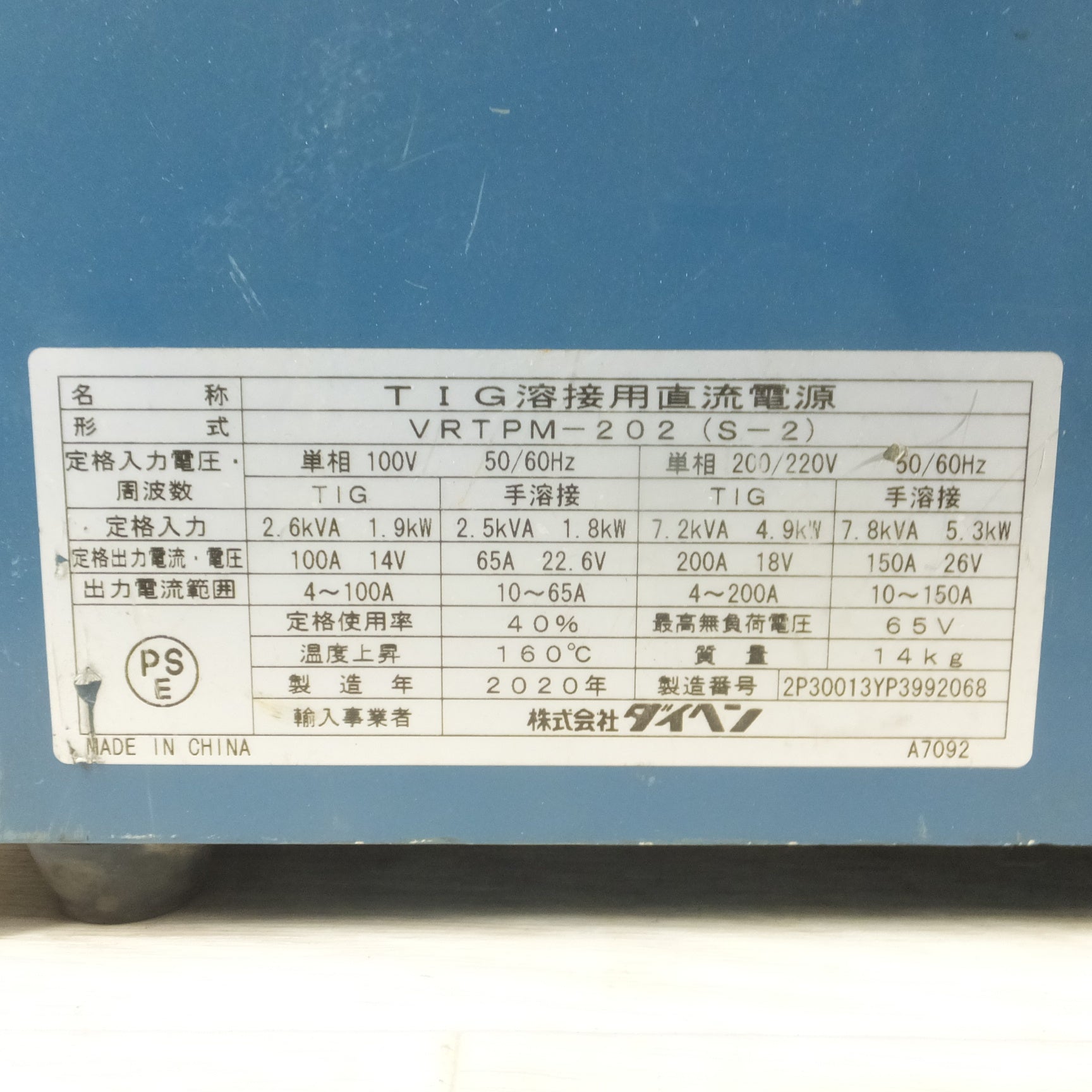 [送料無料] ◆DAIHEN ダイヘン TIG溶接用直流電源 VRTPM-202(S-2) 溶接機 TIG MINI 200PⅡ 2020年製 本体のみ◆ |