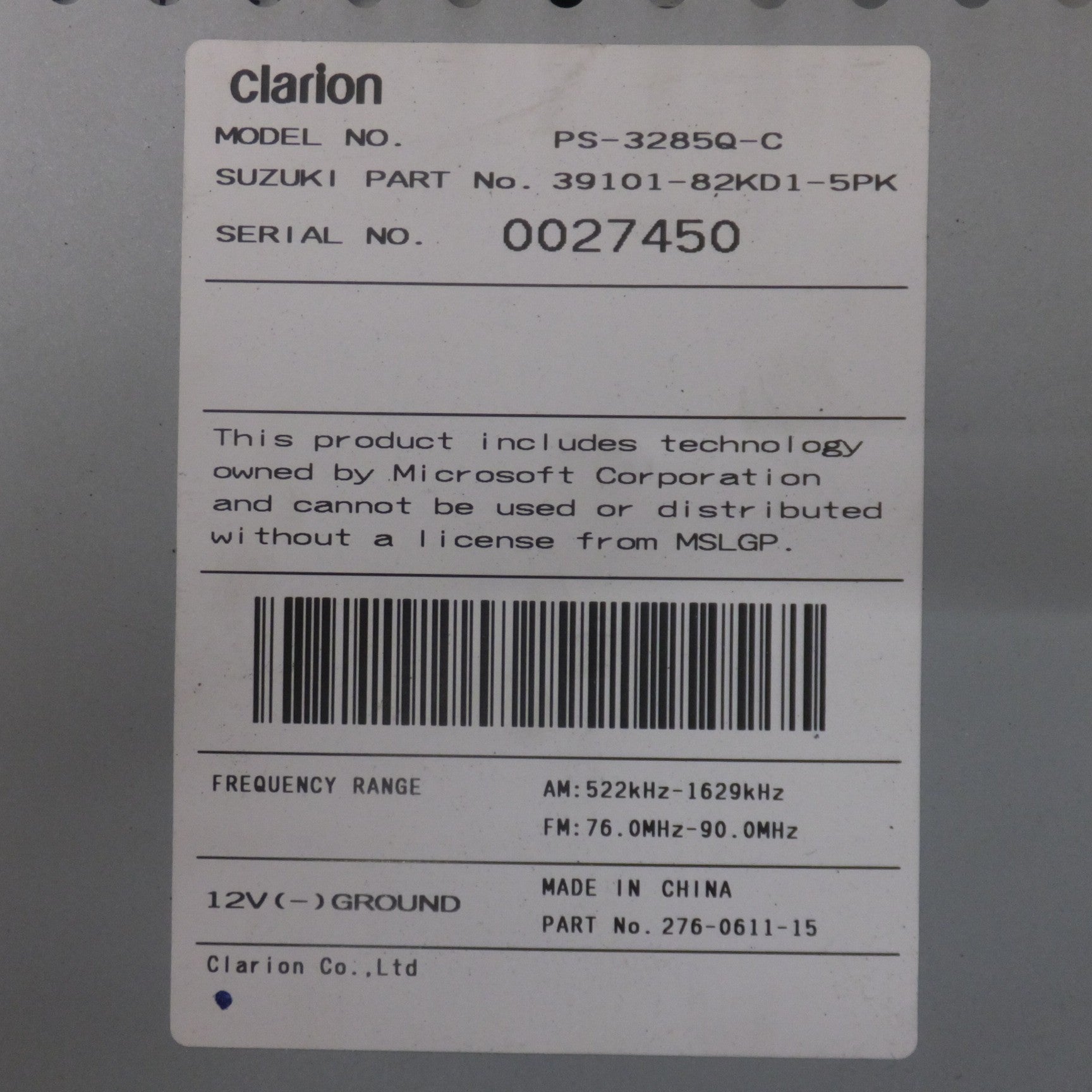 [送料無料] ★クラリオン製 スズキ 純正 カーオーディオ CDプレーヤー PS-3285Q-C 39101-82KD1-5PK[35]★