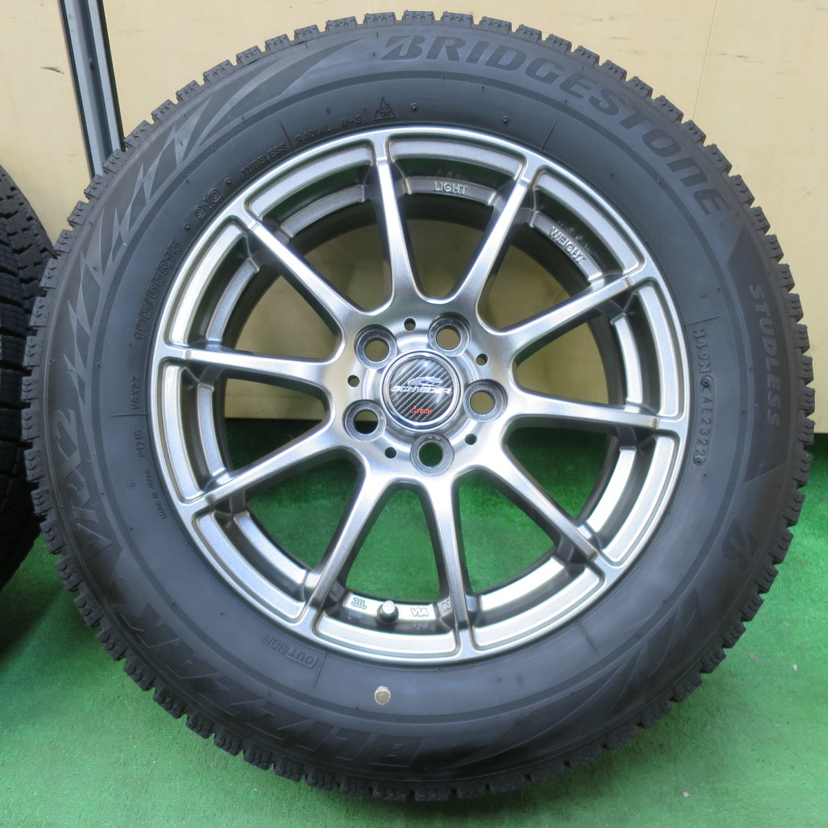 [送料無料] バリ溝!22年!キレイ!9.5分★プリウス 等 195/65R15 スタッドレス ブリヂストン ブリザック VRX2 SCHNEIDER シュナイダー PCD100/5H★4101601イス