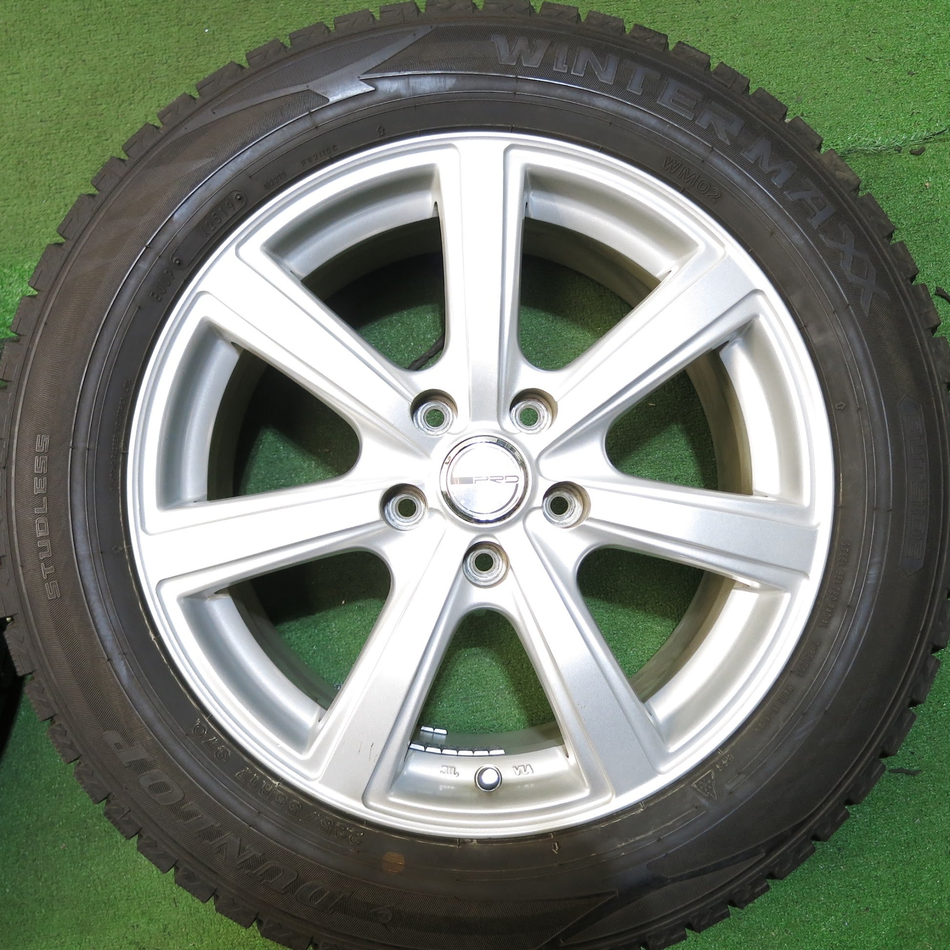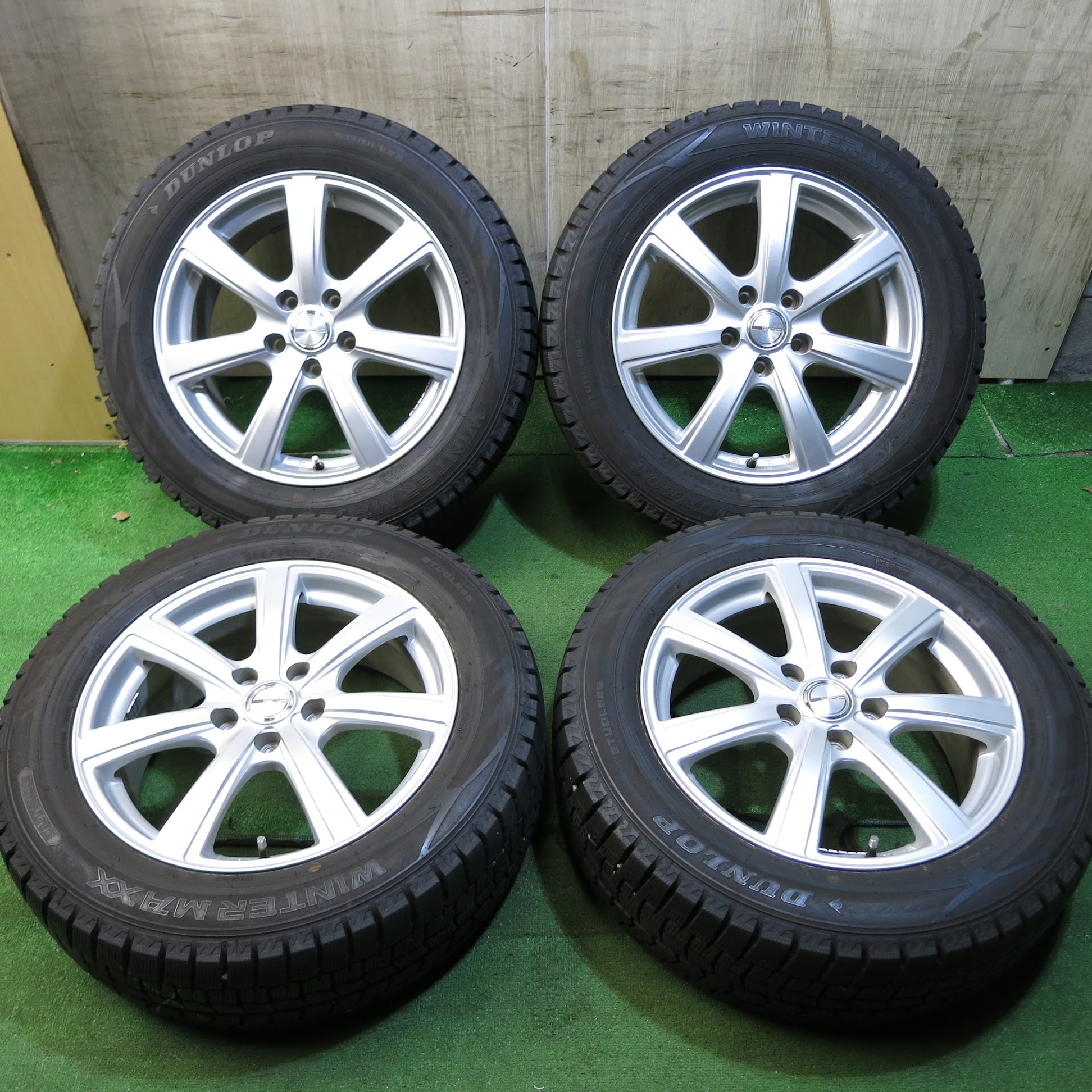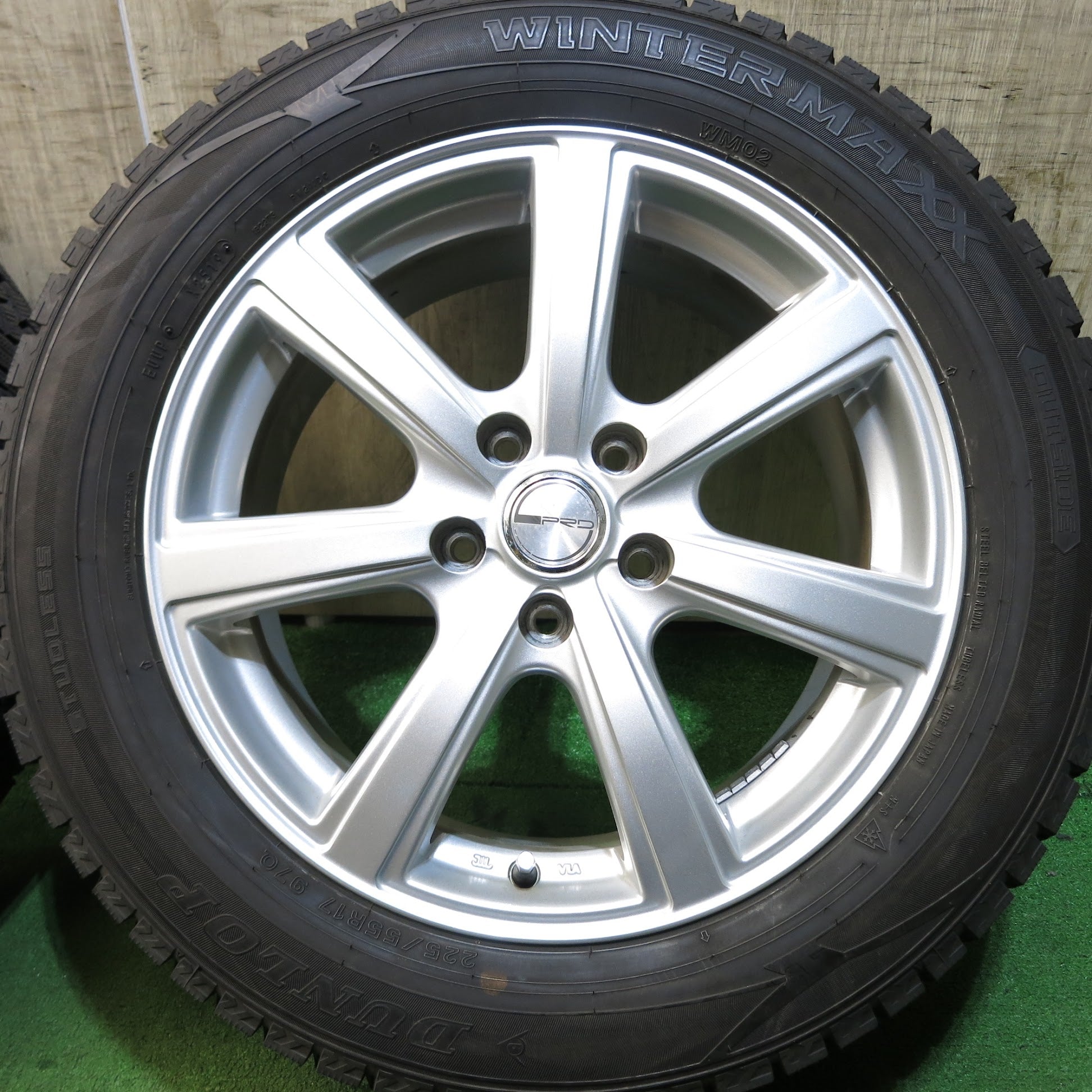 [送料無料]バリ溝!19年!キレイ!9.5分★スタッドレス 225/55R17 ダンロップ ウインターマックス WM02 PRD 社外 アルミ 17インチ PCD114.3/5H★3042815Hス |