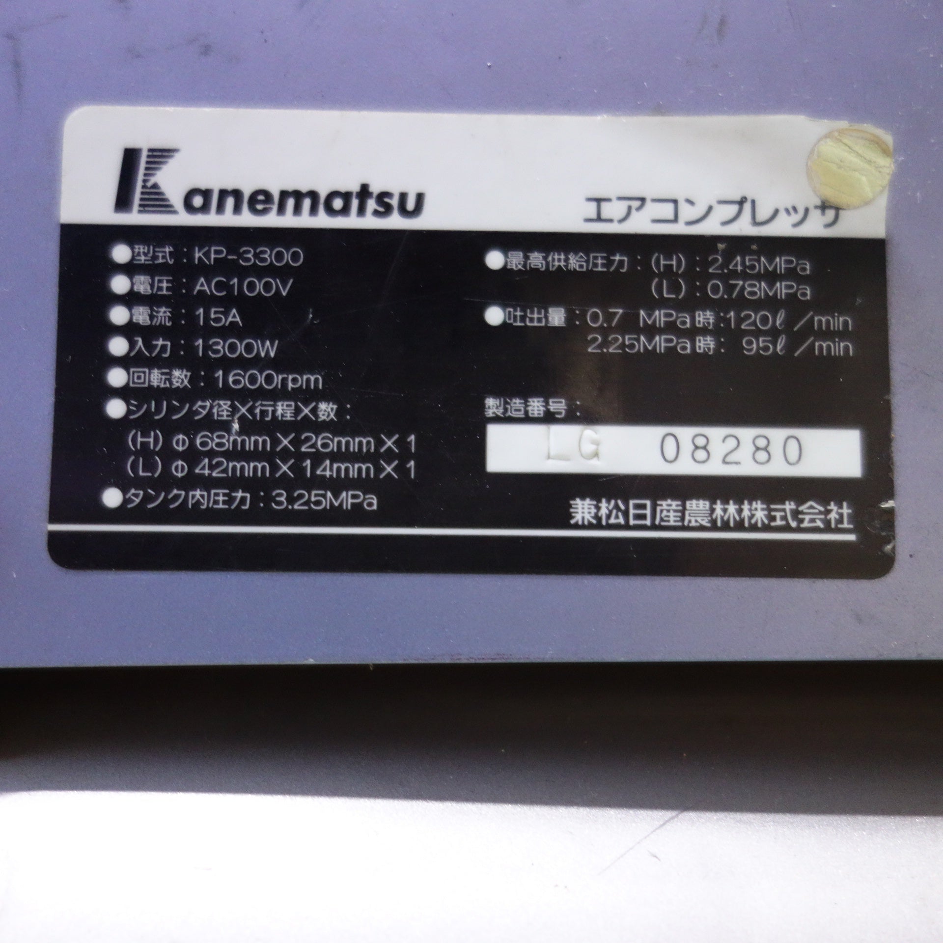 [送料無料] ◆カネマツ 高圧 エア コンプレッサー 大魔神 DAIMAJIN 100V KP-3300 KANEMATSU◆ |
