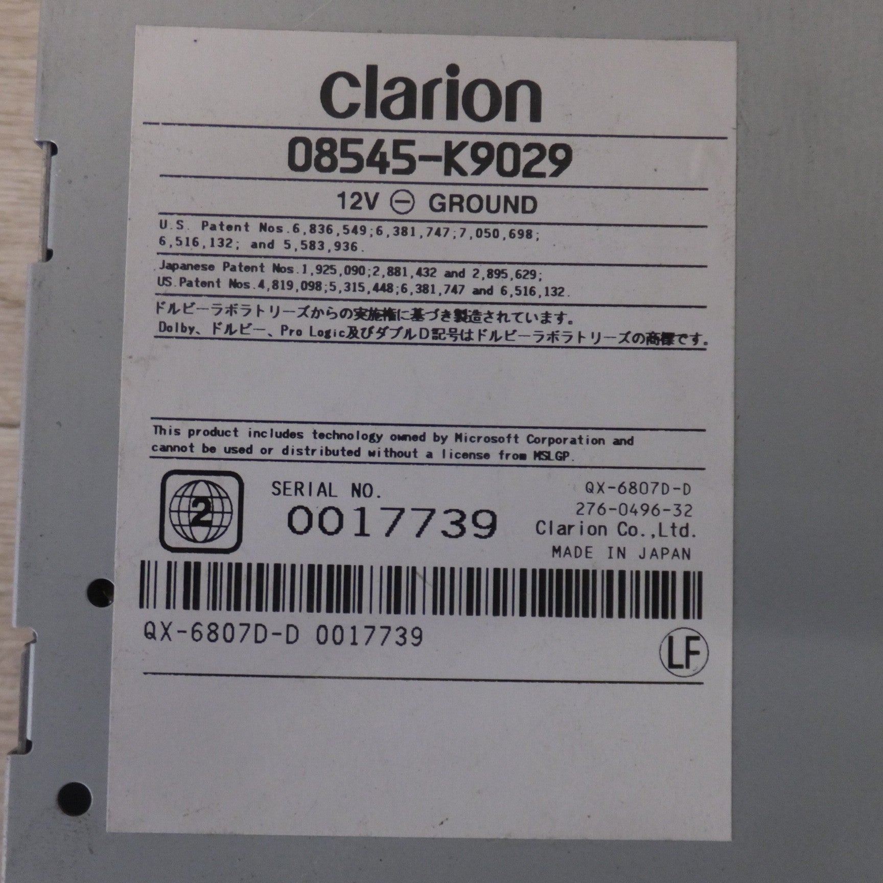 | シリアル番号 | 0017739 |