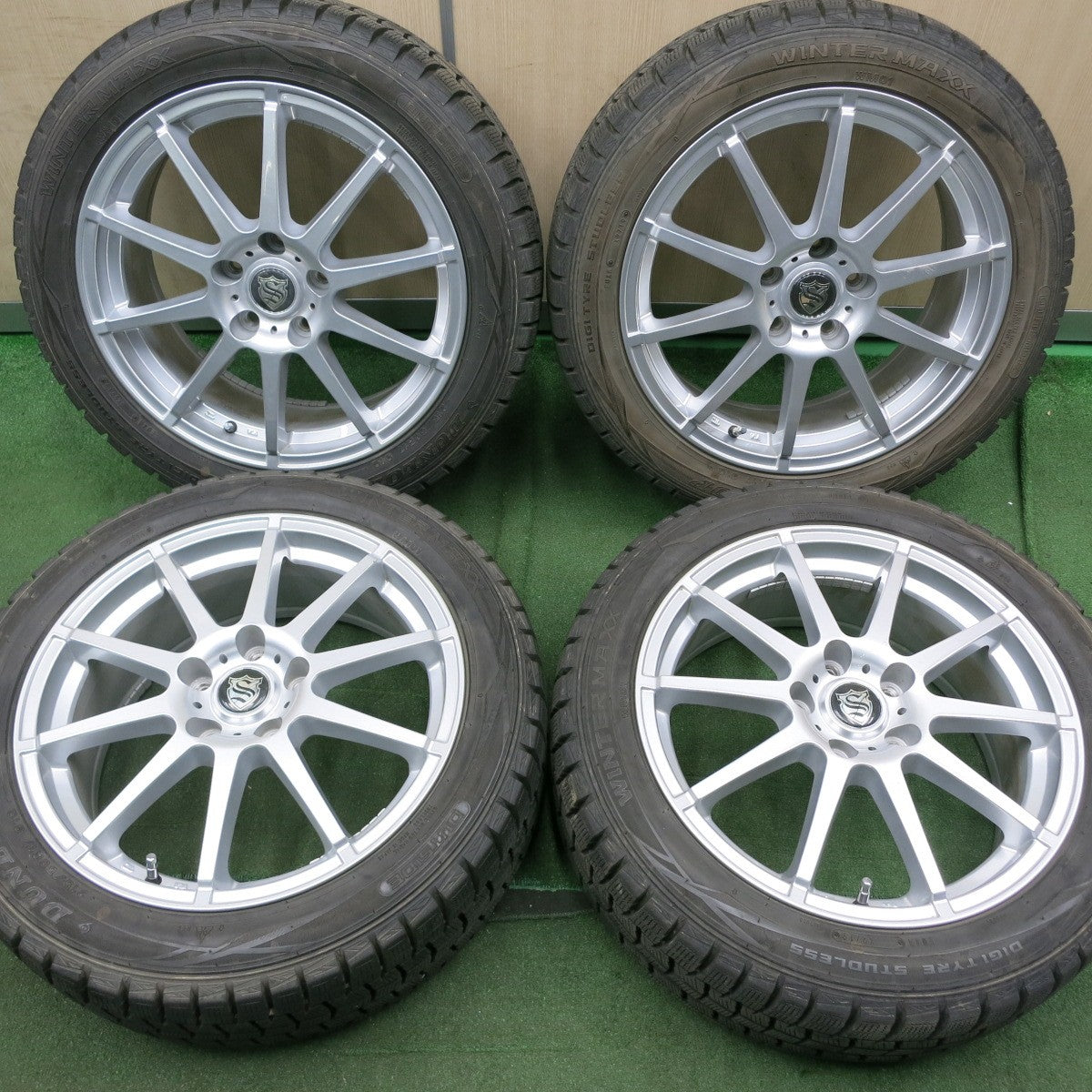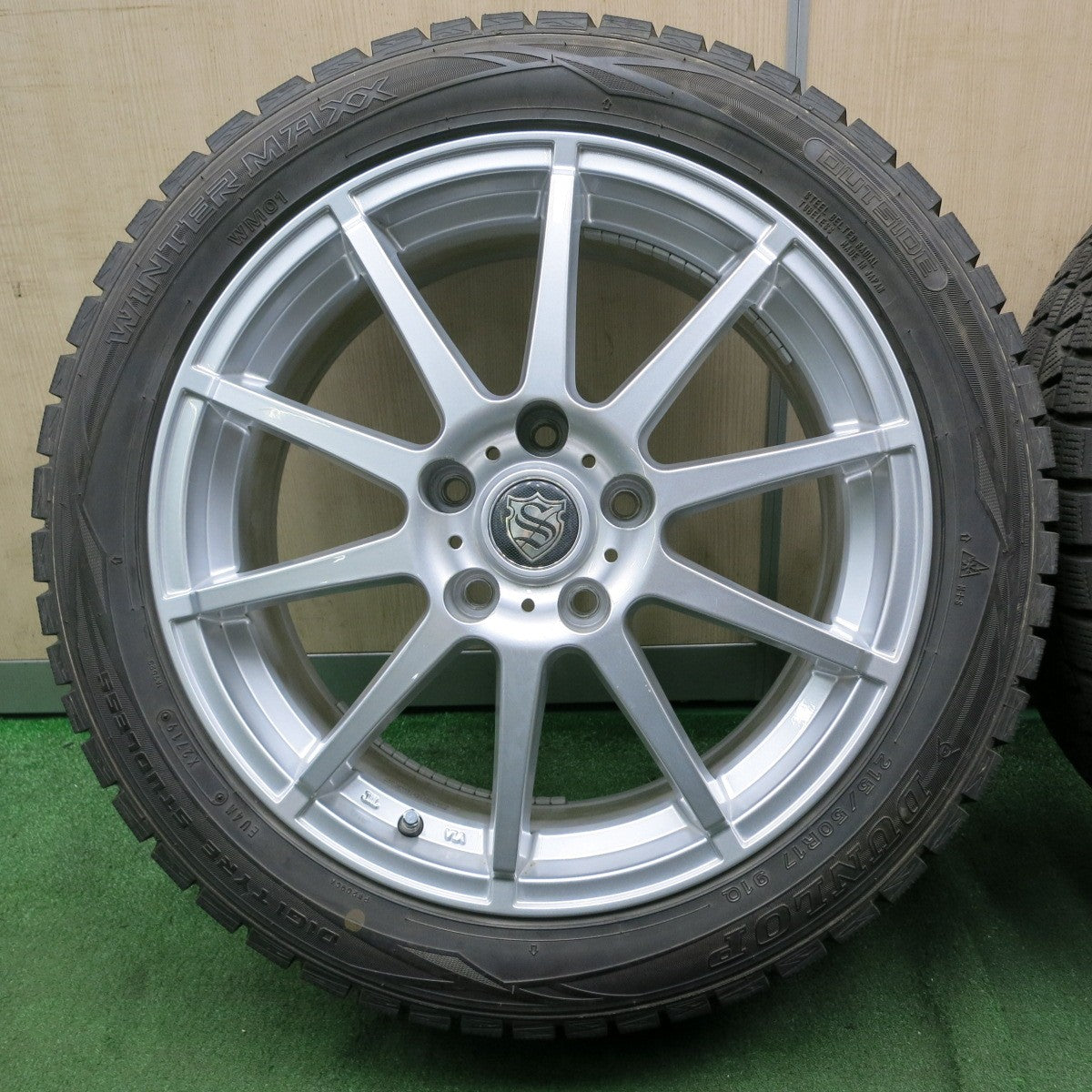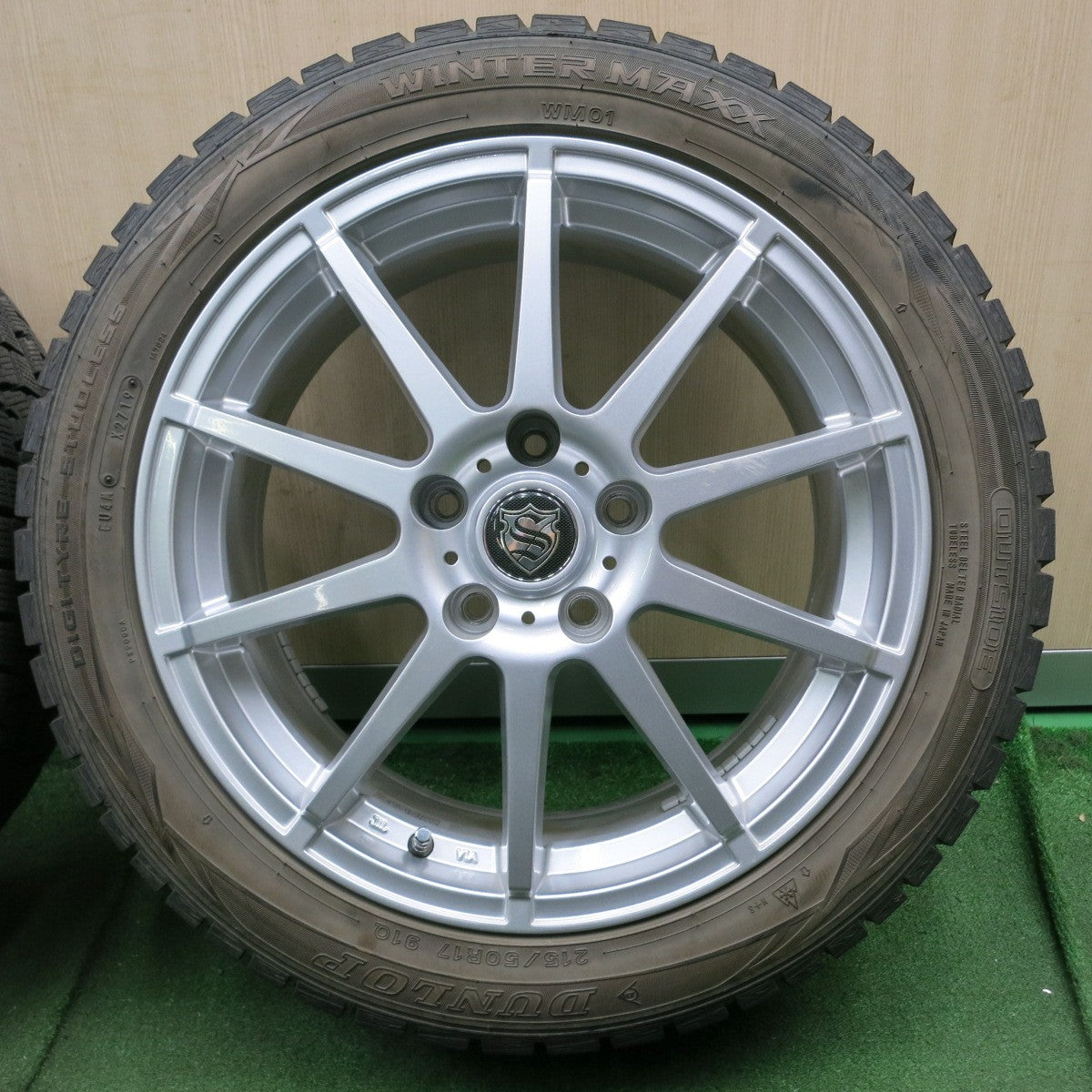 [送料無料] バリ溝!キレイ!9.5分以上★スタッドレス 215/50R17 ダンロップ ウインターマックス WM01 社外 アルミ 17インチ PCD114.3/5H★4062903NJス |