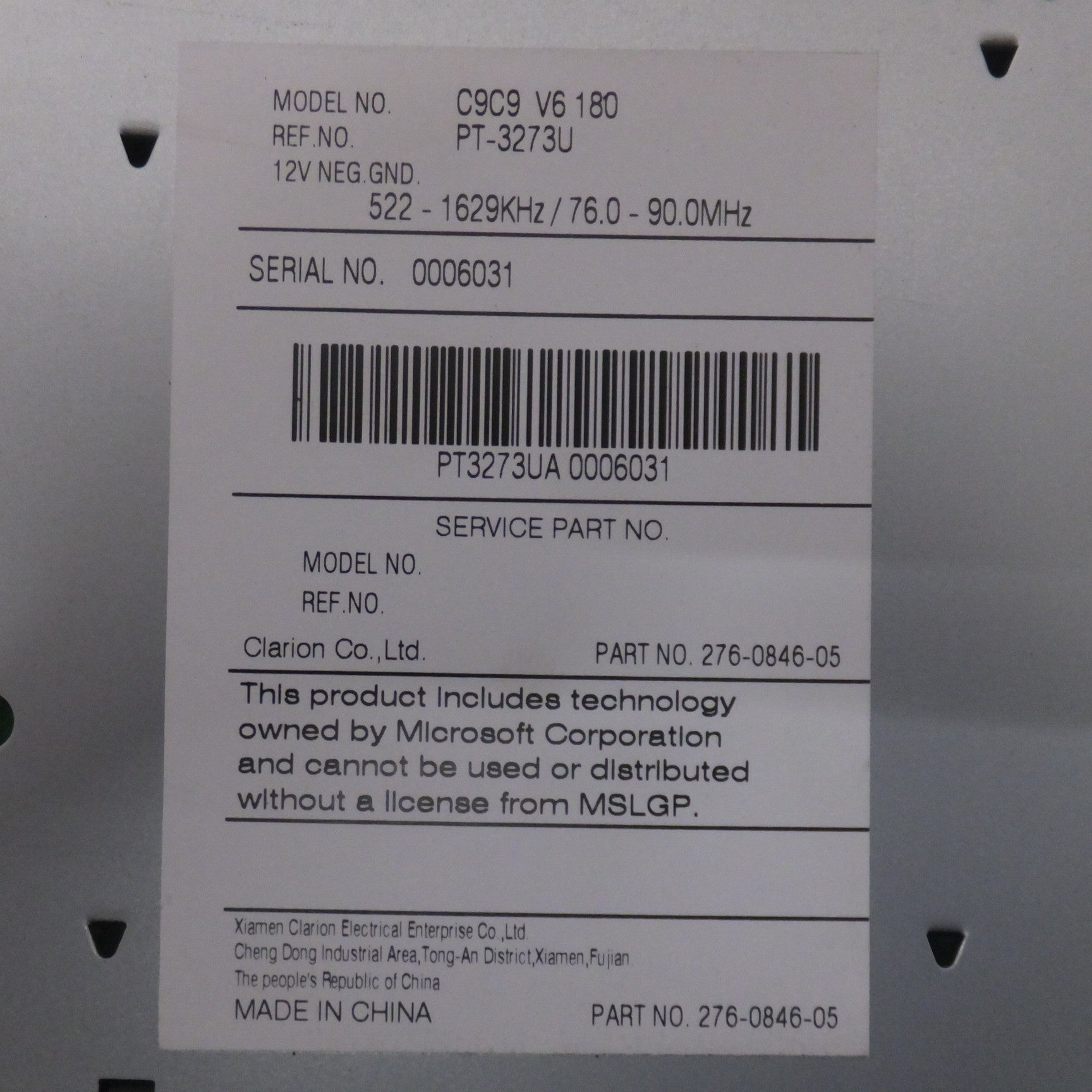[送料無料] ★クラリオン製 スズキ カーオーディオ CD MP3 WMA レシーバー CZ109 C9C9 V6 180[37]★