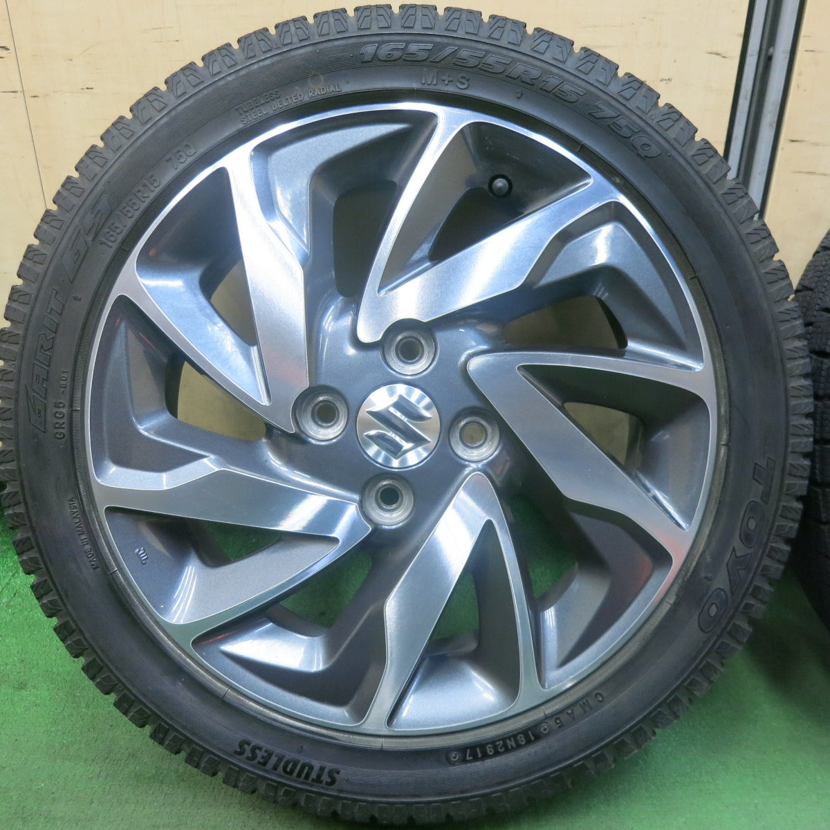 バリ溝!キレイ!9分★スズキ MK42S MK32S スペーシア カスタム 純正 165/55R15 スタッドレス トーヨー ガリット G5 15インチ PCD100/4H★5112901SKス