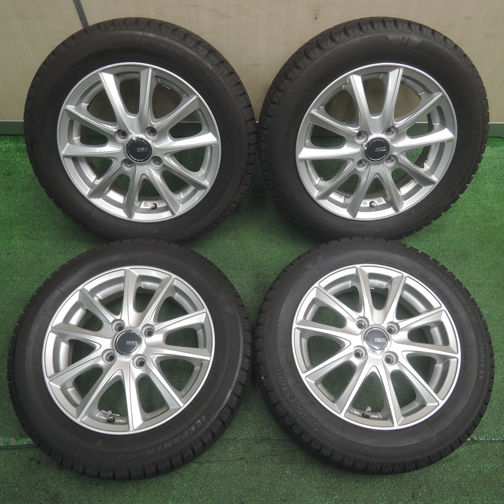 [送料無料]バリ溝!21年!キレイ!9分★スタッドレス 155/65R14 ブリヂストン アイスパートナー2 PREO プレオ 14インチ PCD100/4H★3110801NJス |