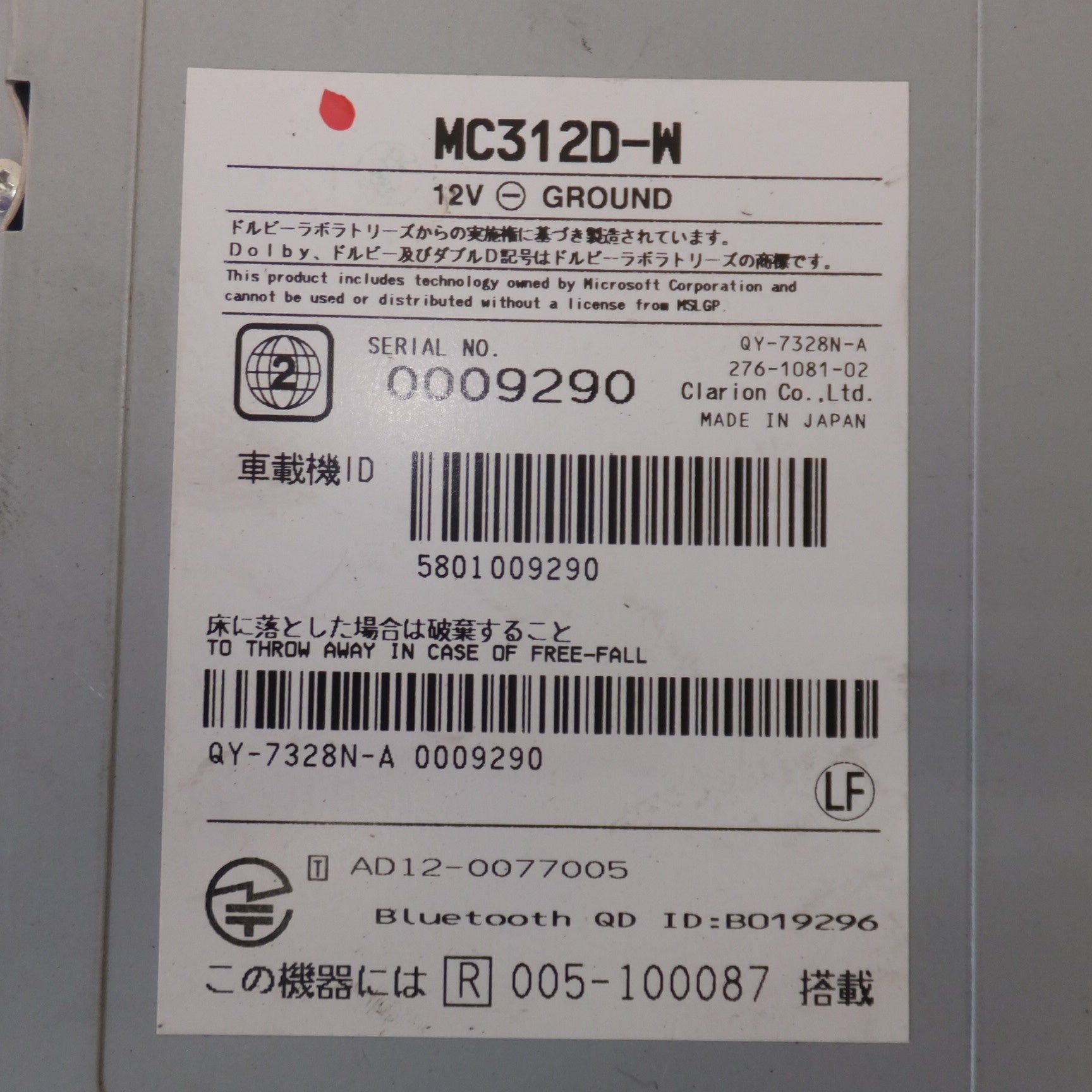 [送料無料] 現状品★クラリオン製 日産 純正 オリジナルナビゲーションシステム MC312D-W(14)★