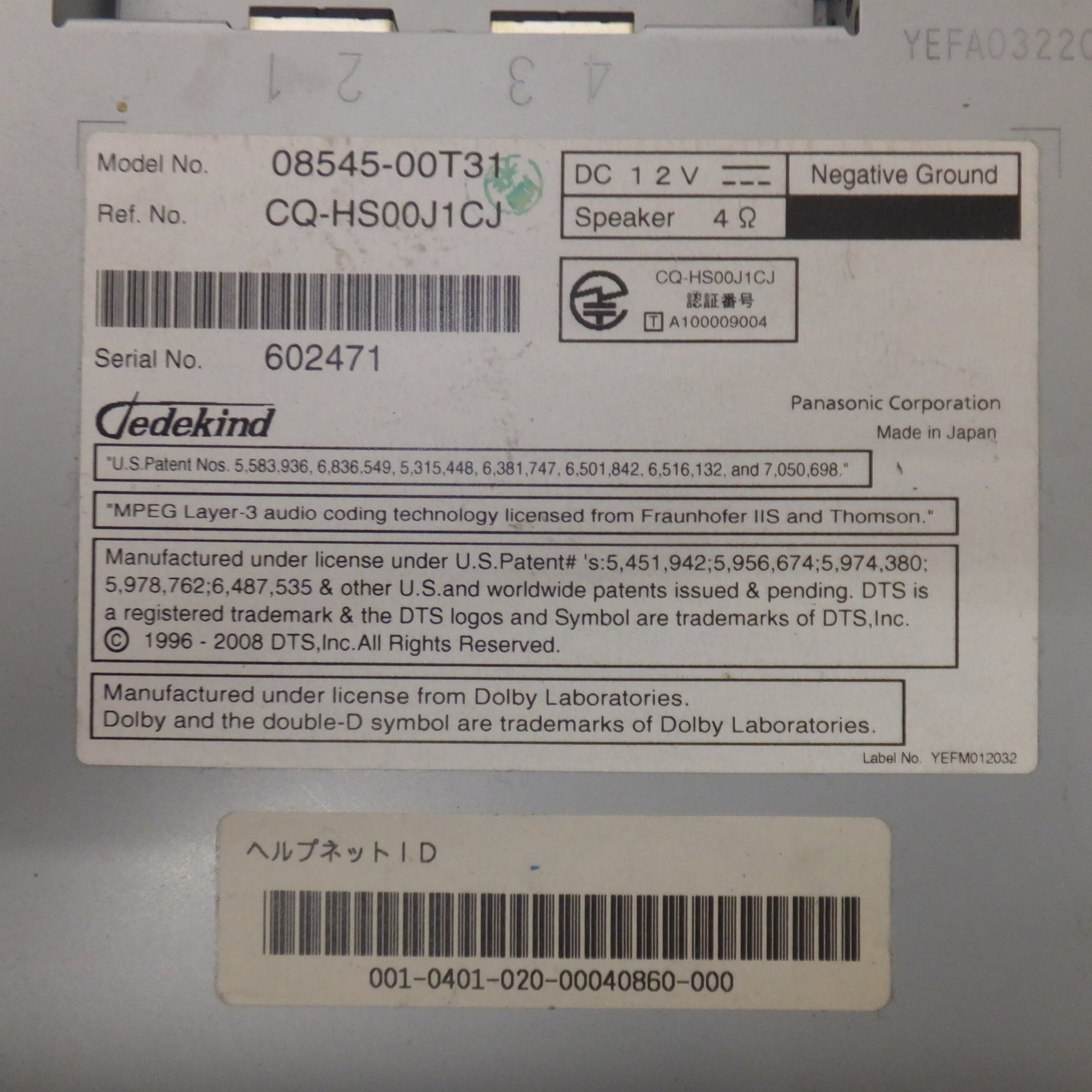 | シリアル番号 | 602471 |