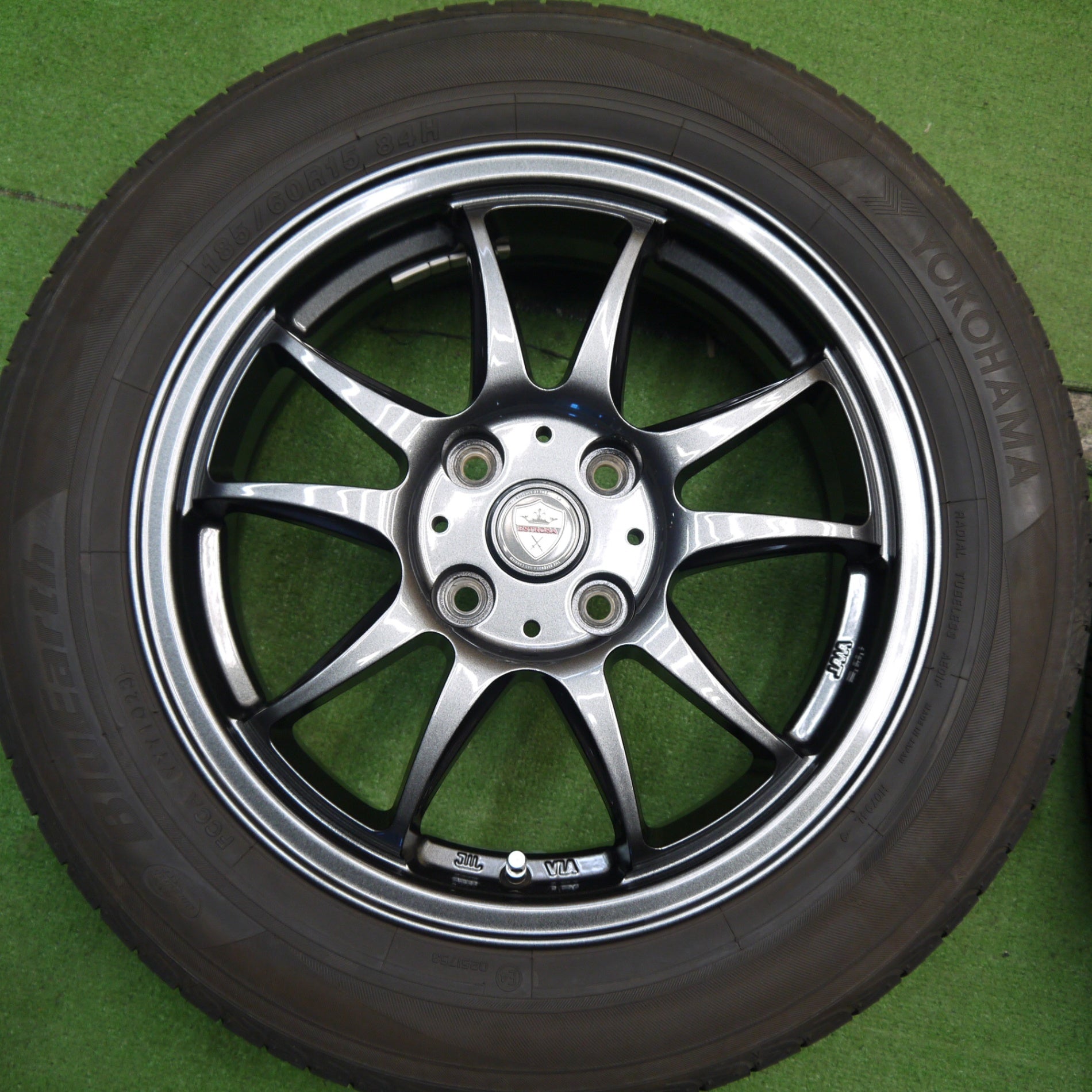バリ溝!23年!キレイ!8.5分★185/60R15 ヨコハマ ブルーアース AE01F ESTROSA エステローザ 15インチ PCD100/4H★5051903Hノ