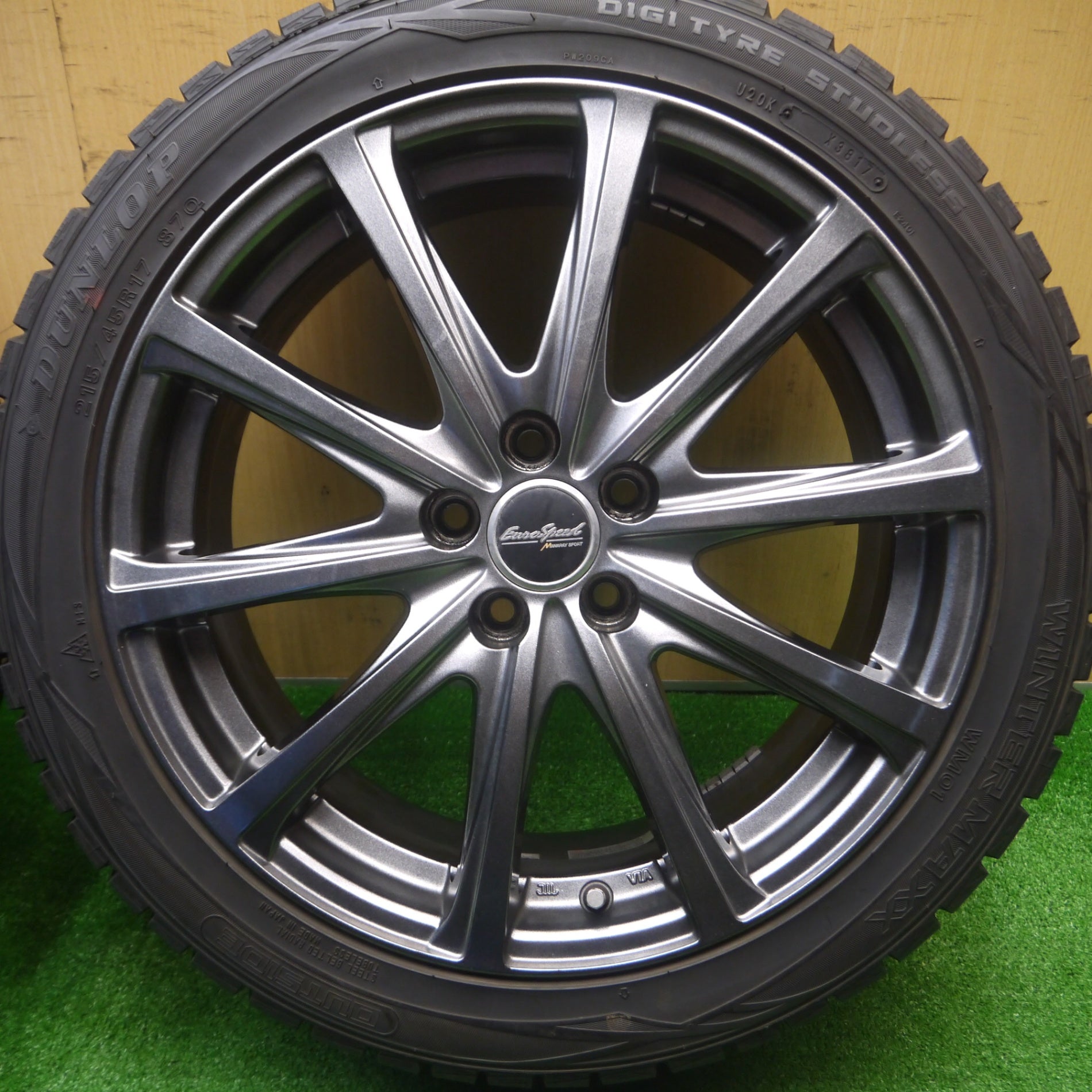 [送料無料] バリ溝!キレイ!9.5分★86 BRZ等 215/45R17 スタッドレス ダンロップ ウインターマックス WM01 EuroSpeed MANARAY SPORT PCD100/5H★4091001Hス |