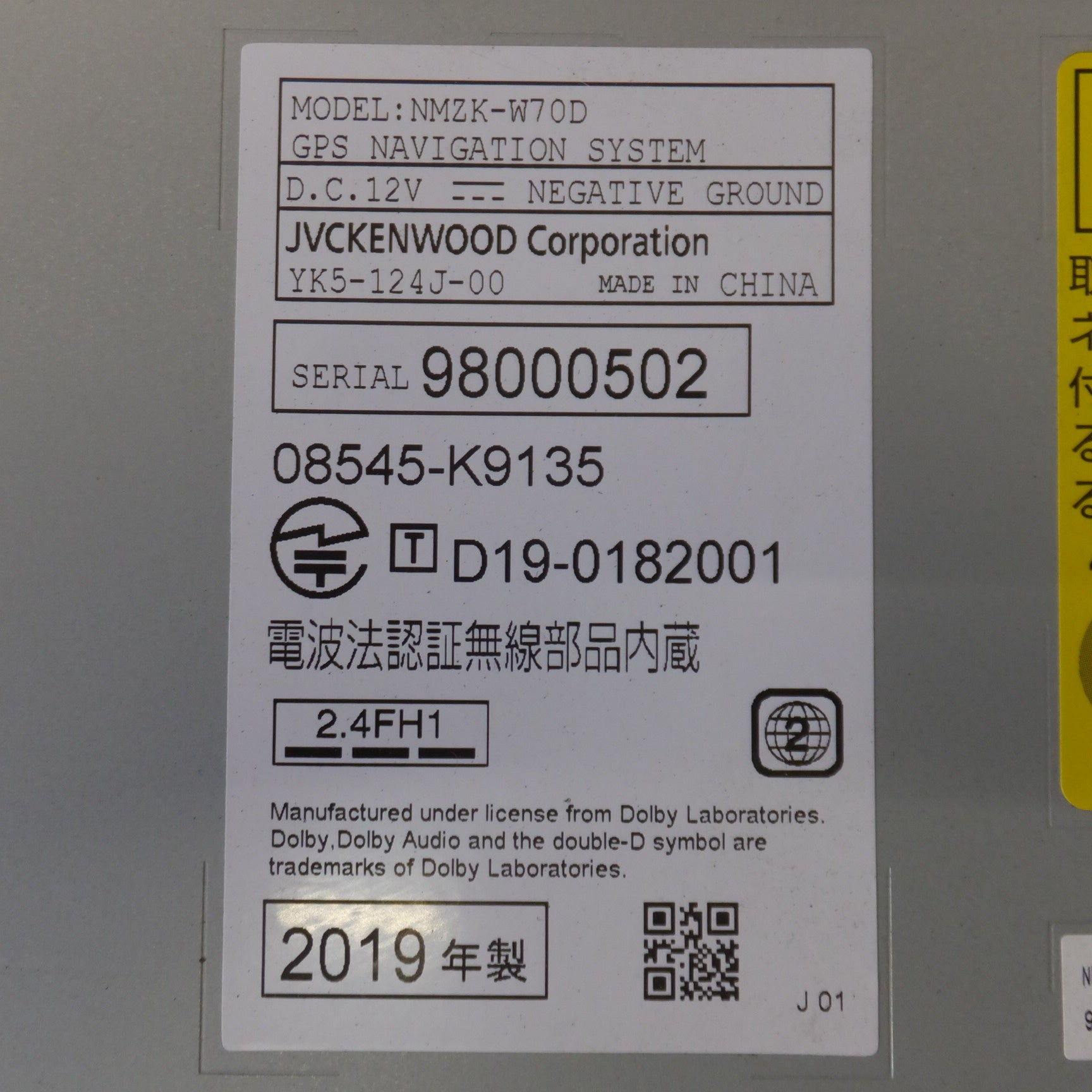 | 型番 | 08545-K9135 NMZK-W70D |