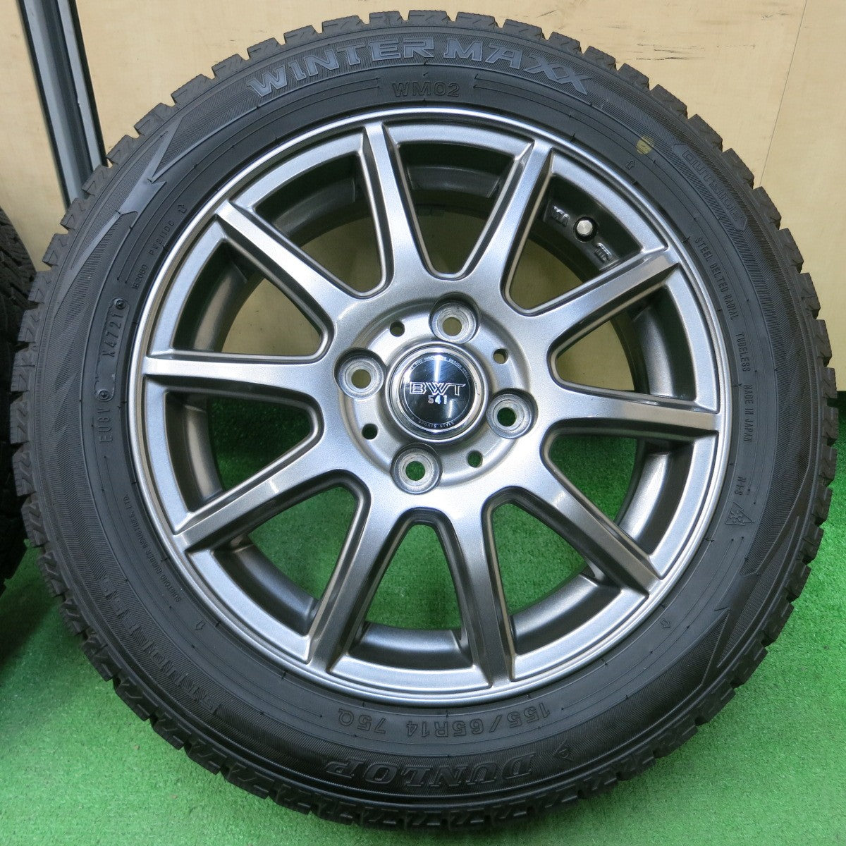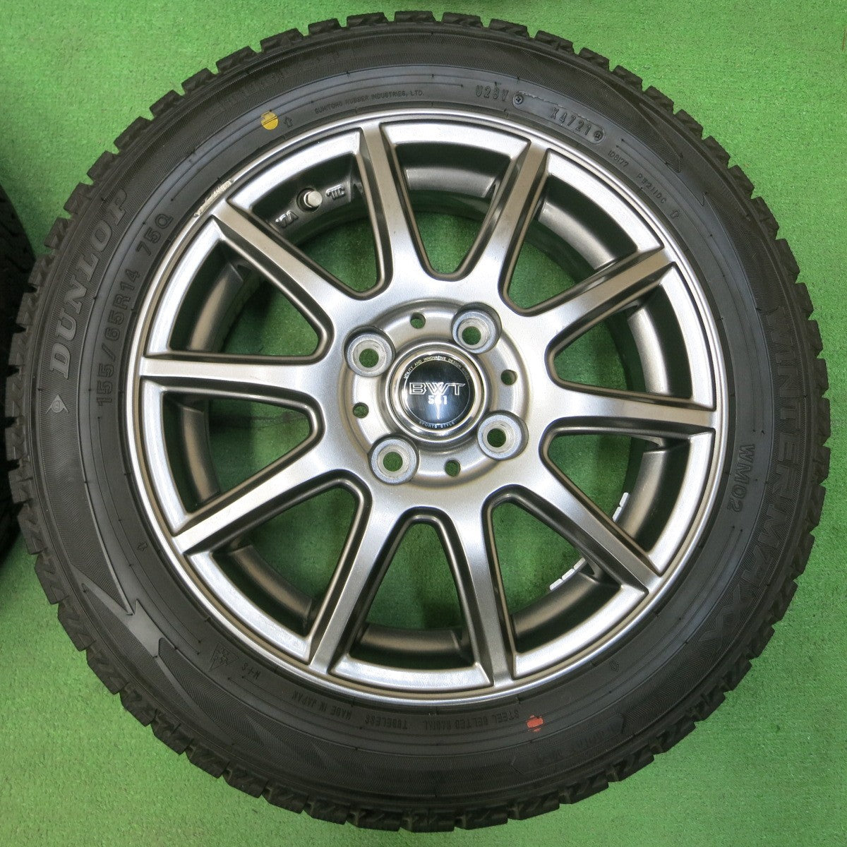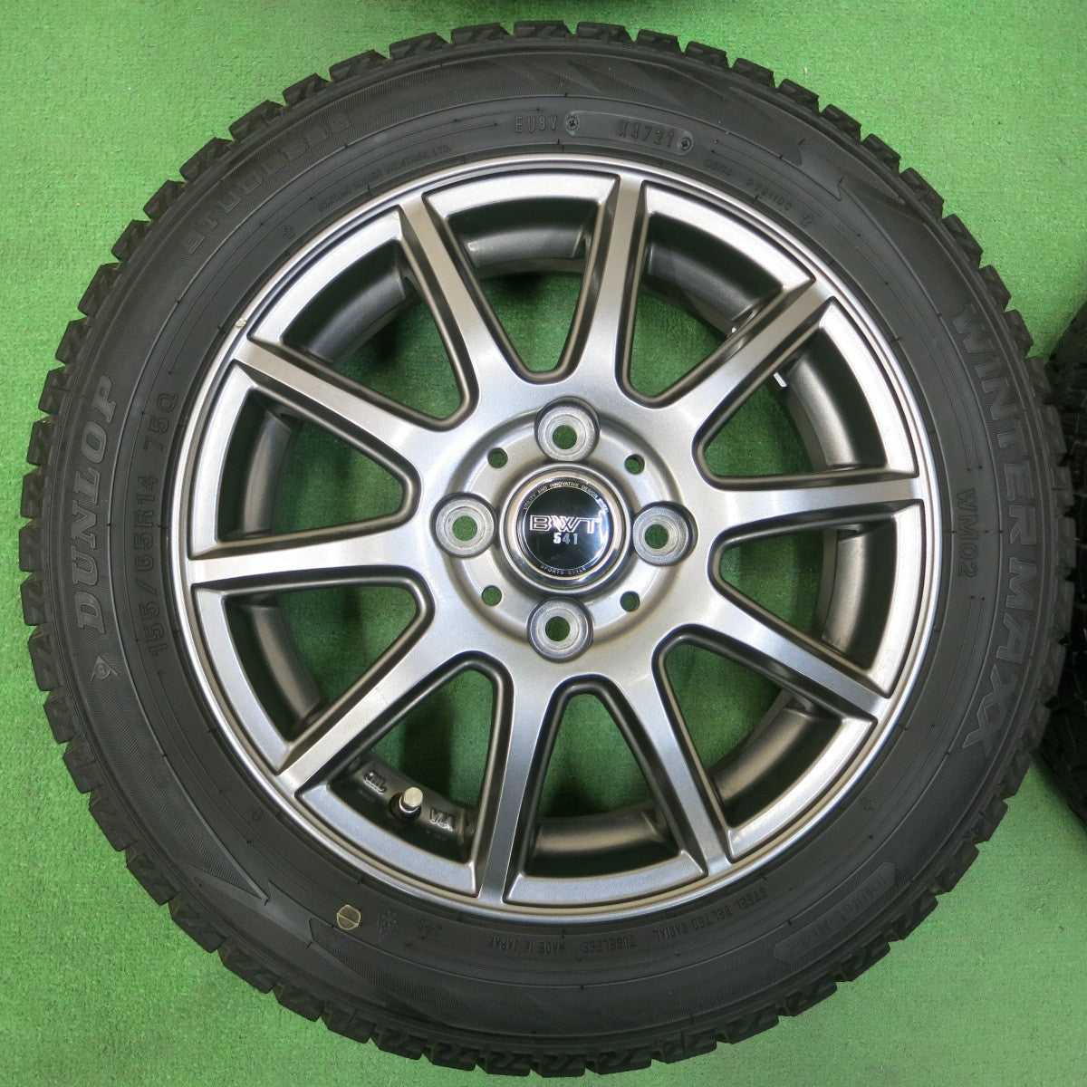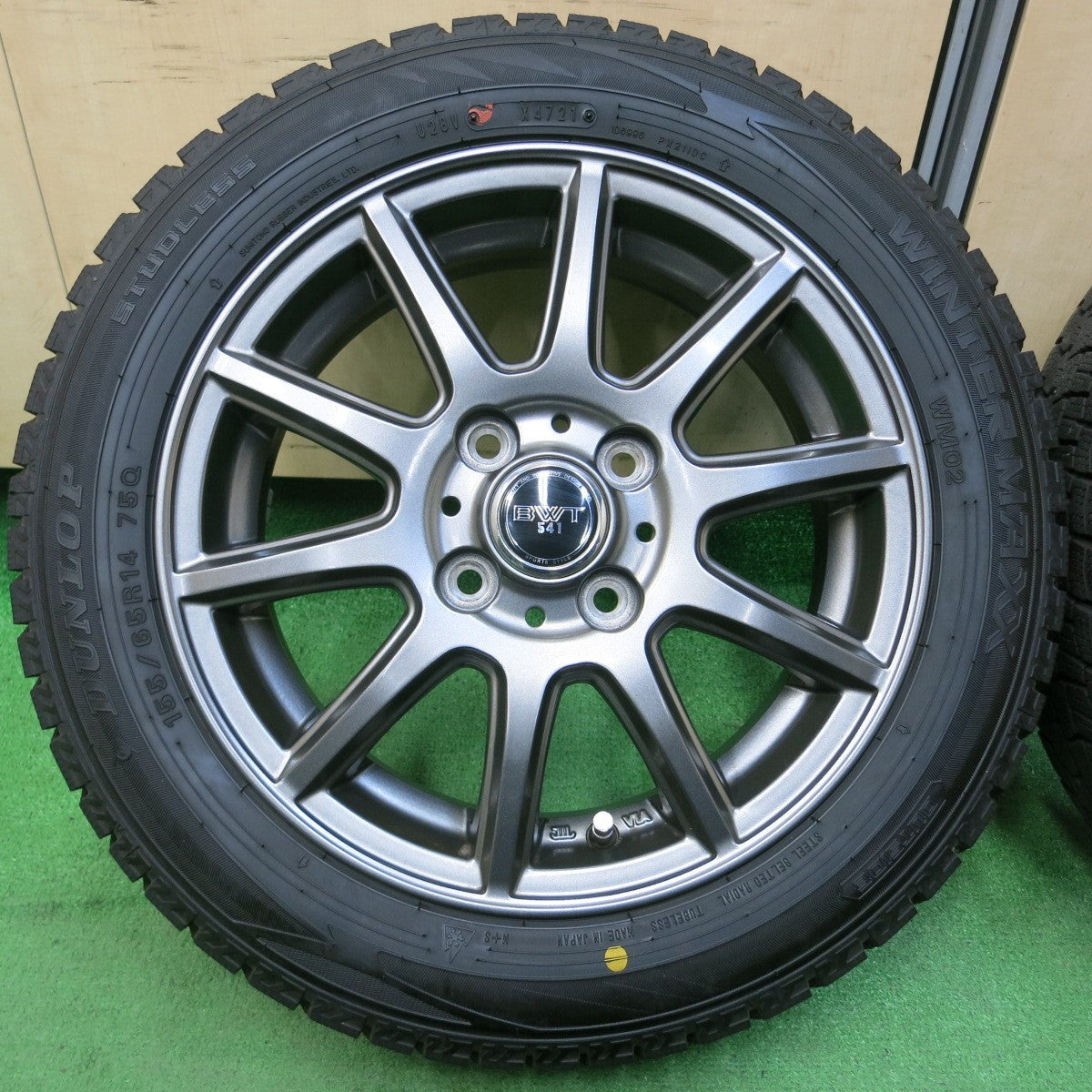 [送料無料] バリ溝!21年!綺麗!9.5分★スタッドレス 155/65R14 ダンロップ ウインターマックス WM02 BWT 541 14インチ PCD100/4H★4042711イス |