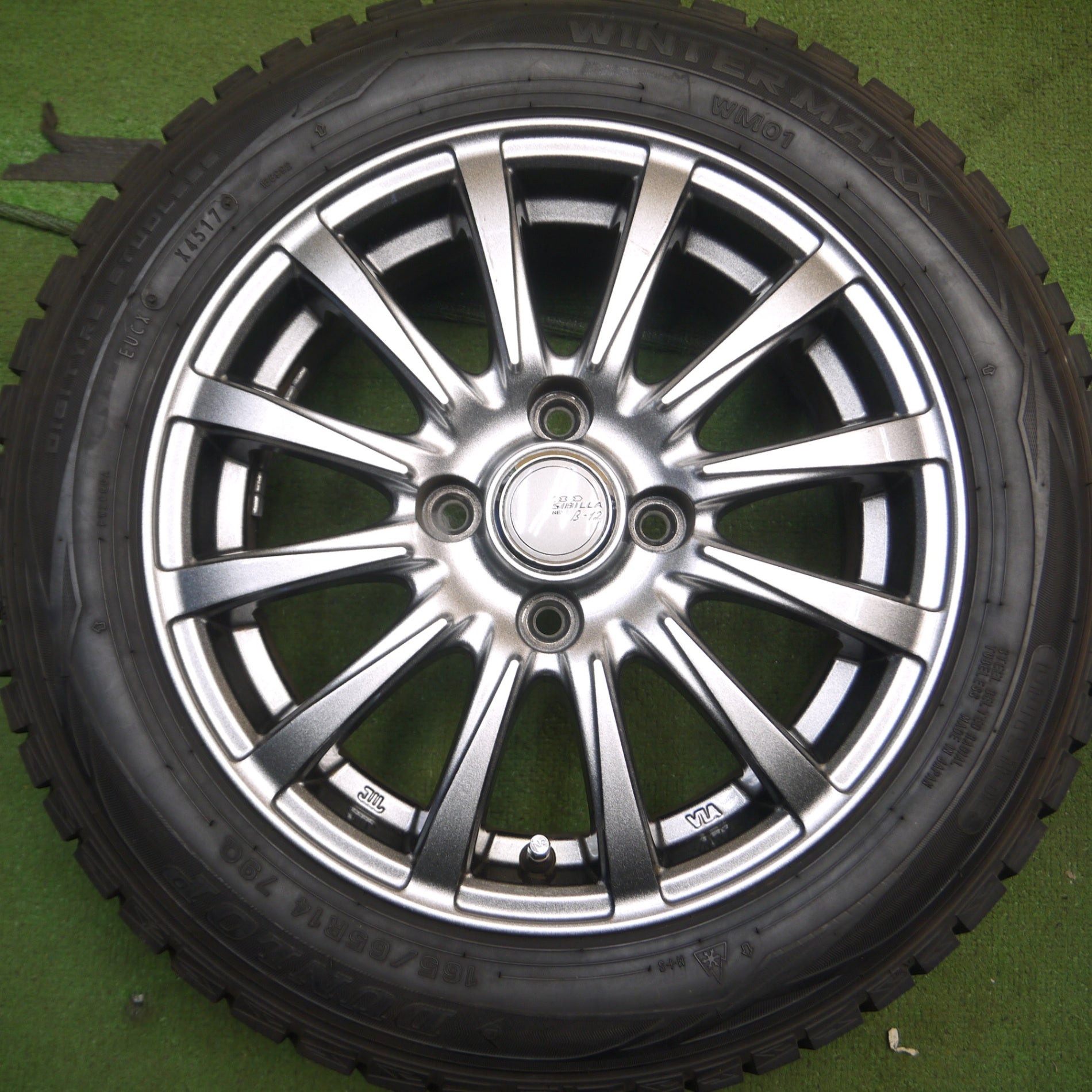 [送料無料] バリ溝!キレイ!9.5分以上★スタッドレス 165/65R14 ダンロップ ウインターマックス WM01 SIBILLA NEXT β-12 シビラ PCD100/4H★4060702Hス |