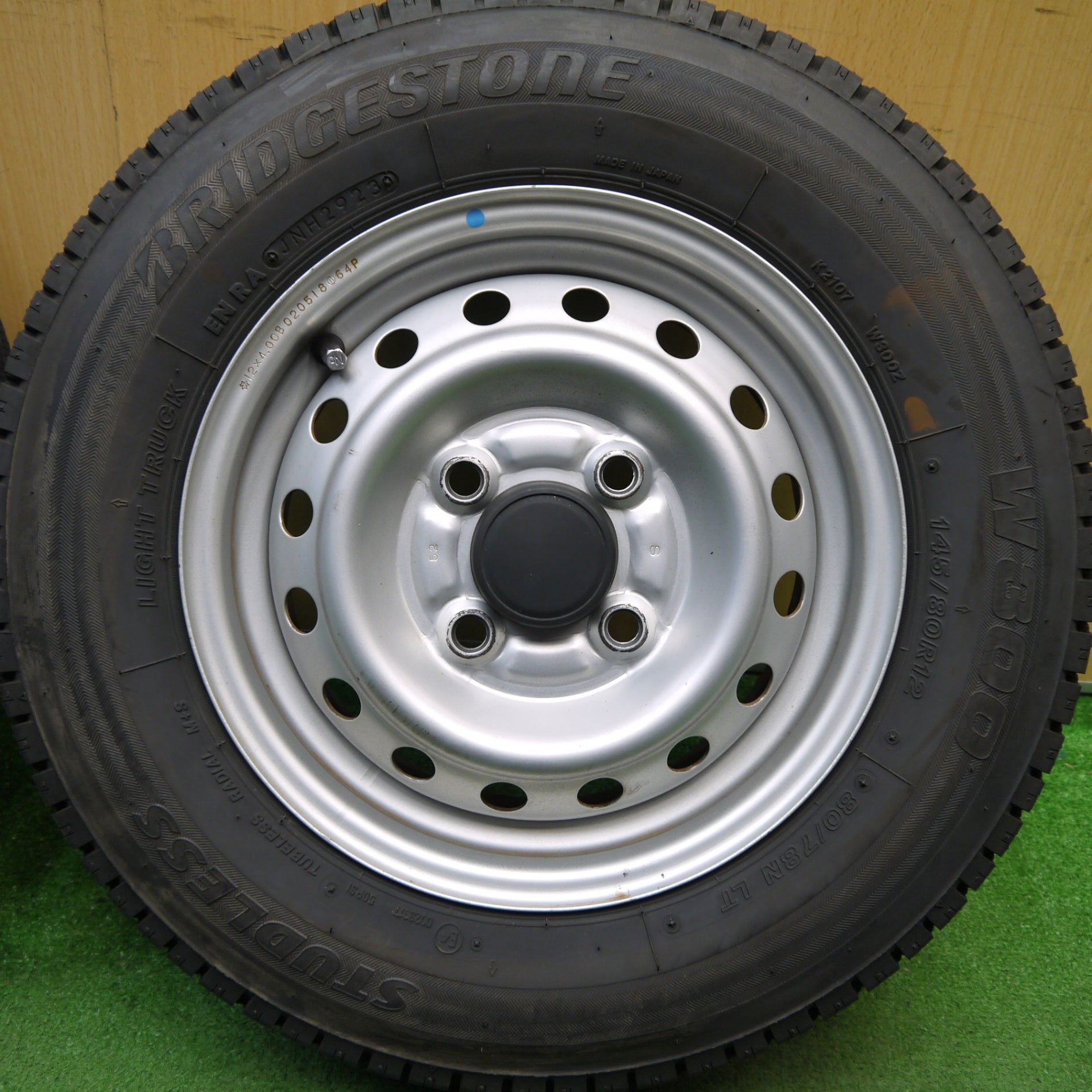 バリ溝!23年!キレイ!9分★スタッドレス 145/80R12 80/78N ブリヂストン W300 スチール ホイール 12インチ PCD100/4H★5052103Hス
