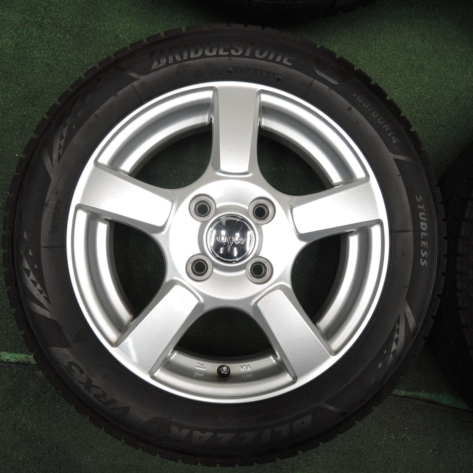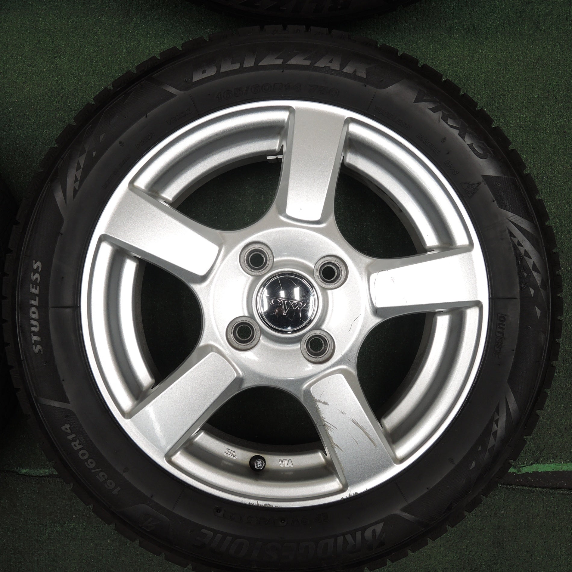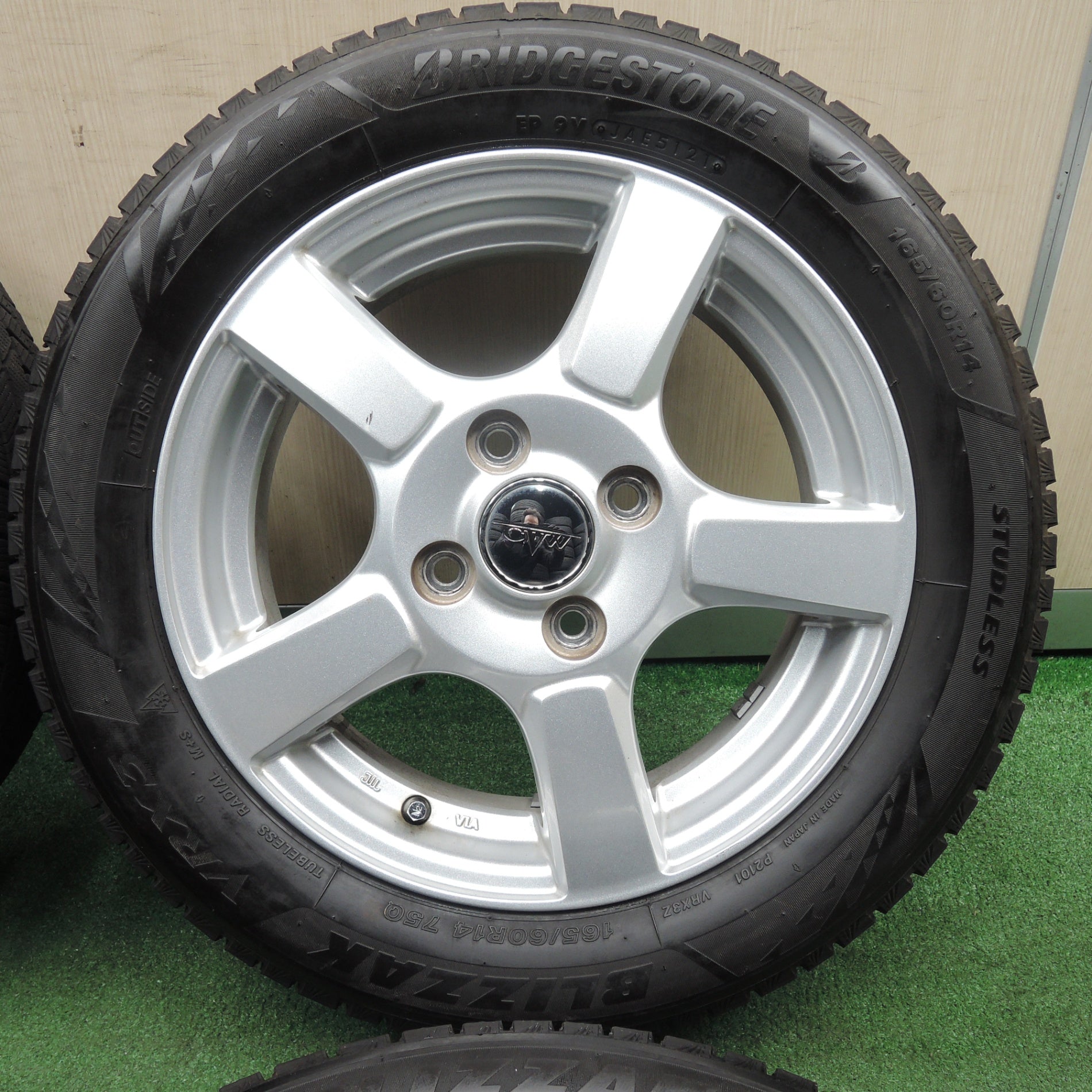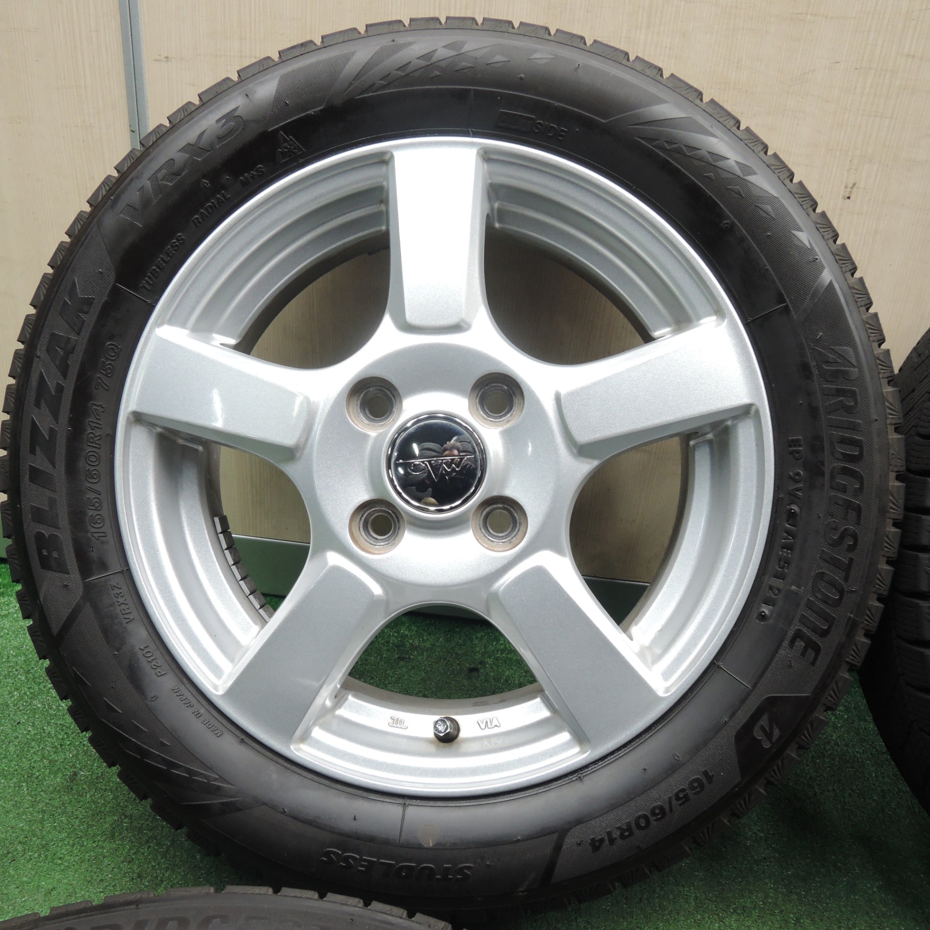 [送料無料] バリ溝!21年!キレイ!9.5分★スタッドレス 165/60R14 ブリヂストン ブリザック VRX3 CVW 社外 アルミ 14インチ PCD100/4H★4022201TNス |