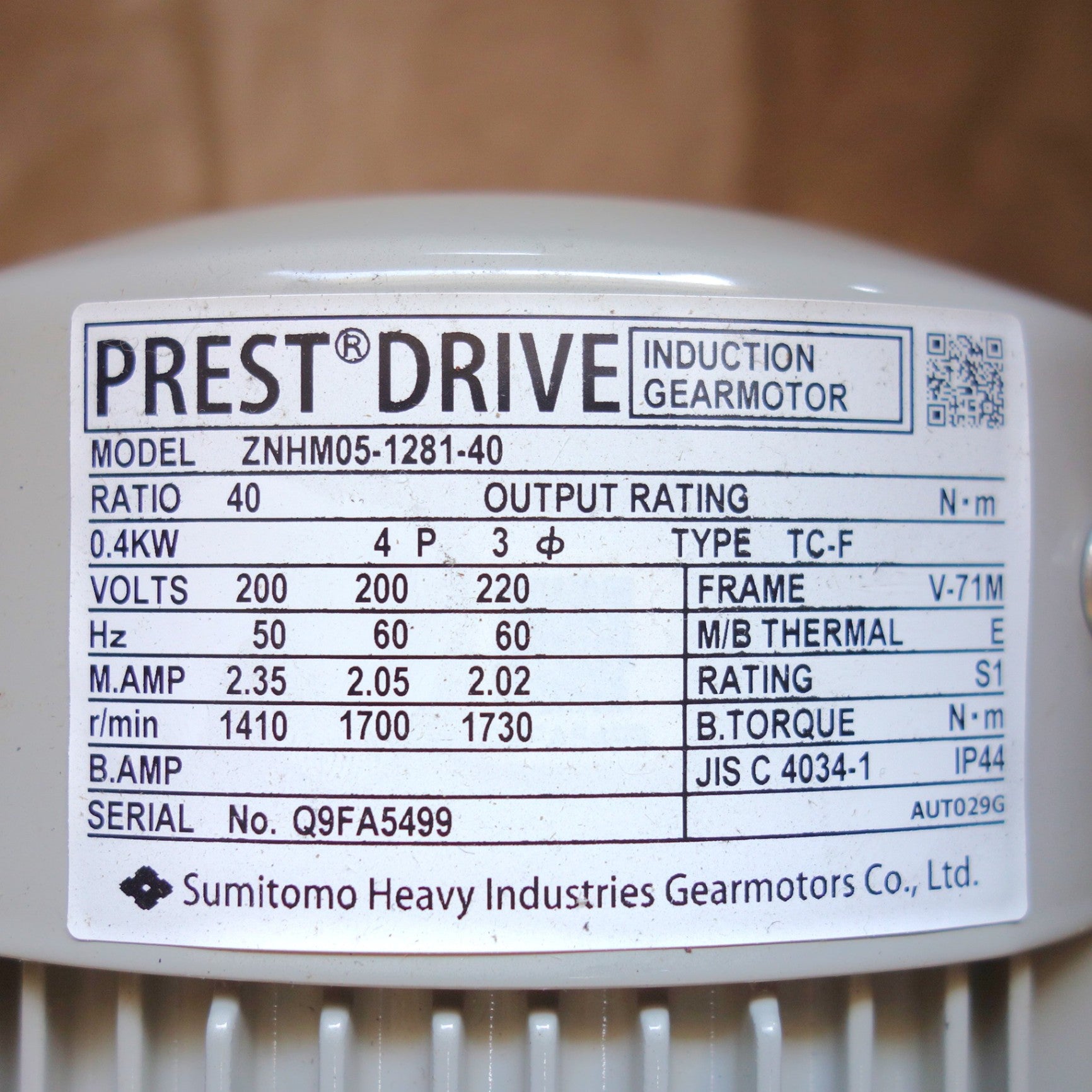 [送料無料] 未使用◆Sumitomo 住友重機械 ギヤモータ ZNHM05-1281-40 プレストNEO 200V◆ |