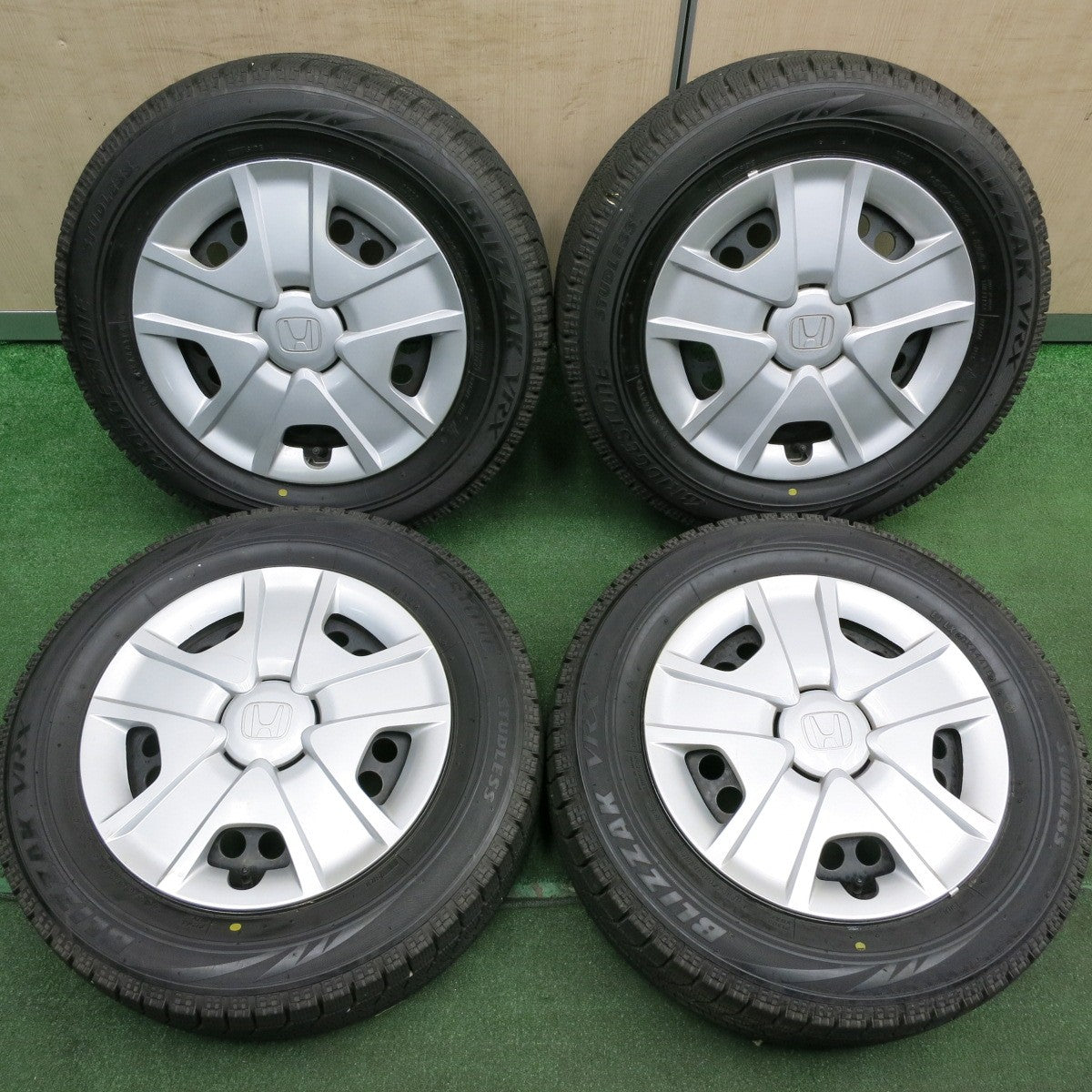 [送料無料] バリ溝!9.5分★ホンダ フィット 純正 スチール 185/65R15 スタッドレス ブリヂストン ブリザック VRX 15インチ PCD100/4H★4051709HAス |