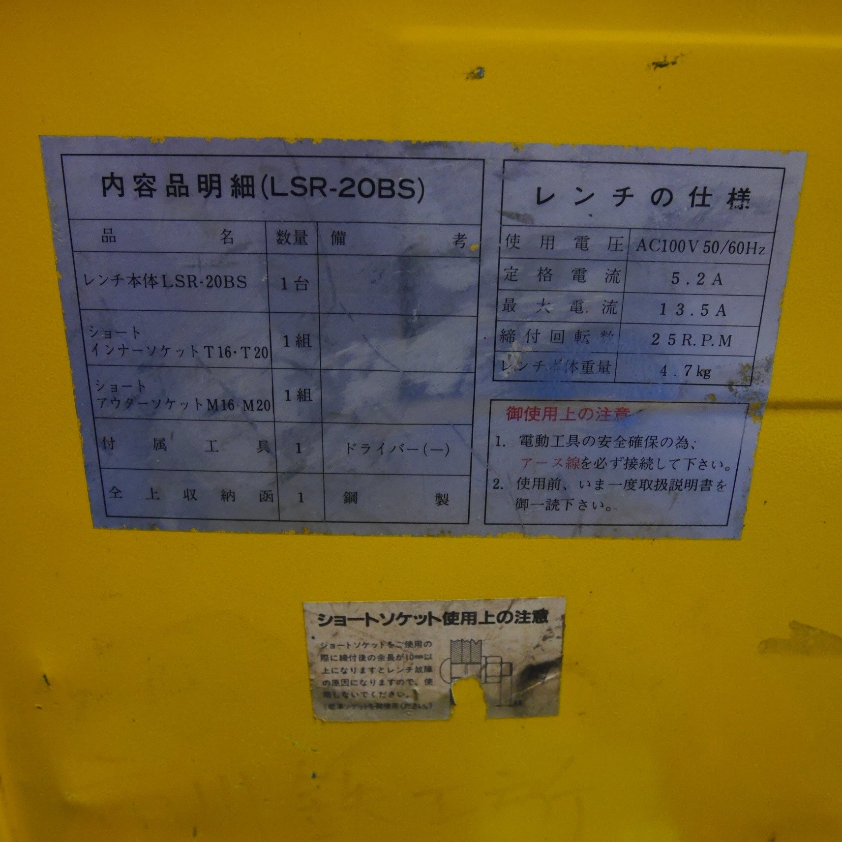 [送料無料] 付属品付き☆芝浦 電動 シャー レンチ LSR-20BS 電動 工具 コード式 100V シバウラ 締め付け②☆