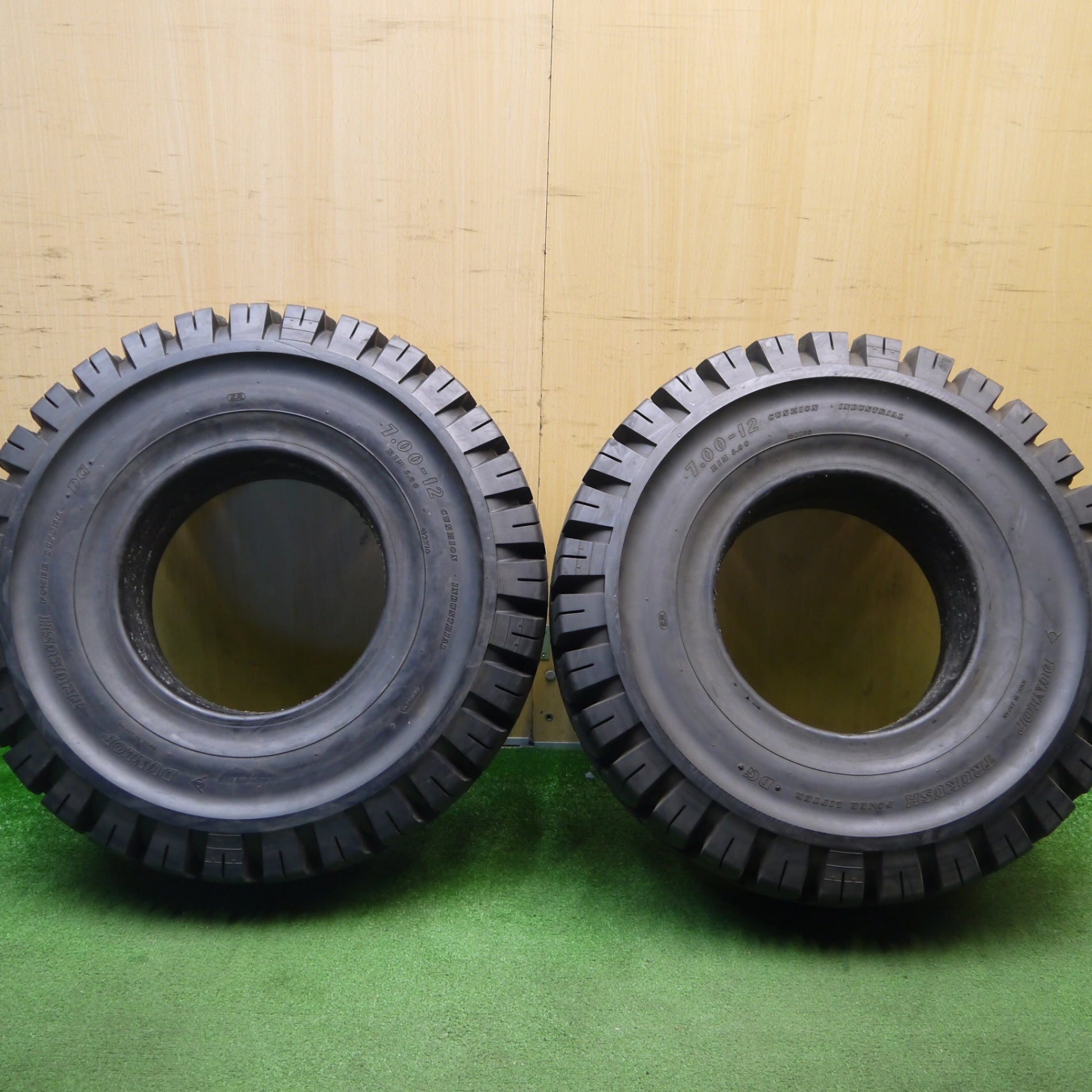 ほぼ未使用!2本★フォークリフト 7.00-12 RIM5.00 ダンロップ TRUKUSH POWER LIFTER DG ノーパンク タイヤ★6020603Hノタ