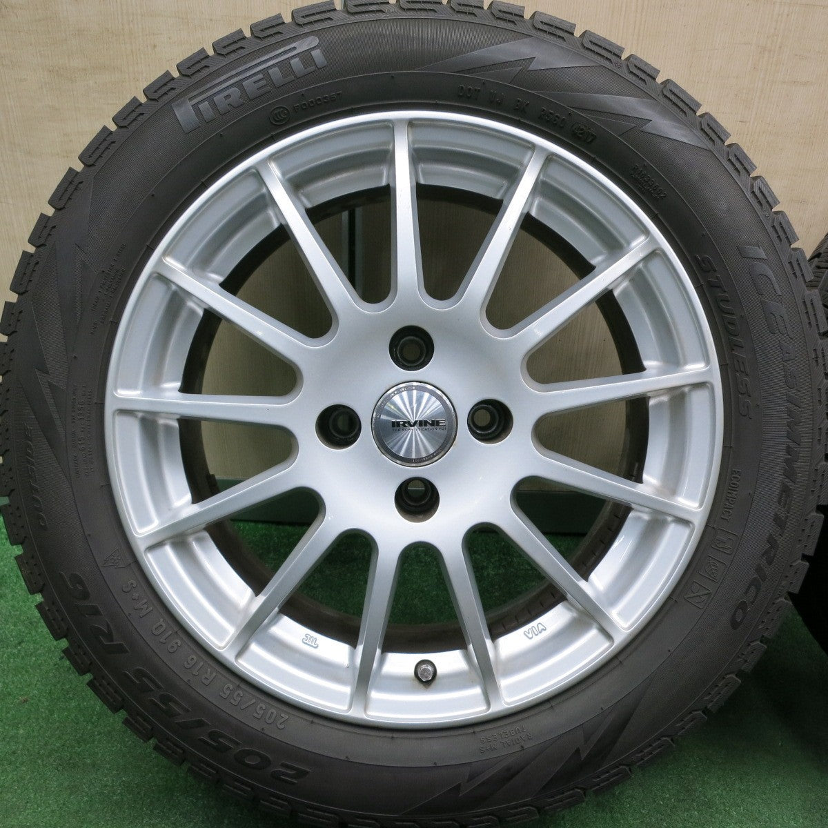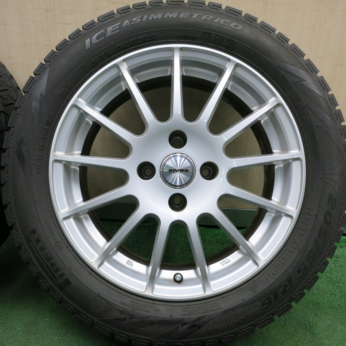 [送料無料] バリ溝!キレイ!8.5分★プジョー等 IRVINE 205/55R16 スタッドレス ピレリ アイスアシンメトリコ 16インチ アーヴィン PCD108/4H★4053005HAス |