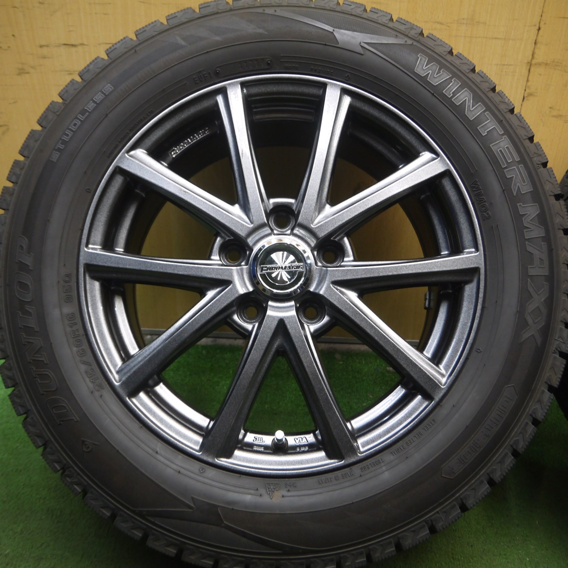 [送料無料] 超バリ溝!キレイ!9.5分以上★スタッドレス 215/60R16 ダンロップ ウインターマックス WM02 EUROMAGIC ユーロマジック 16インチ PCD114.3/5H★4031206Hス |
