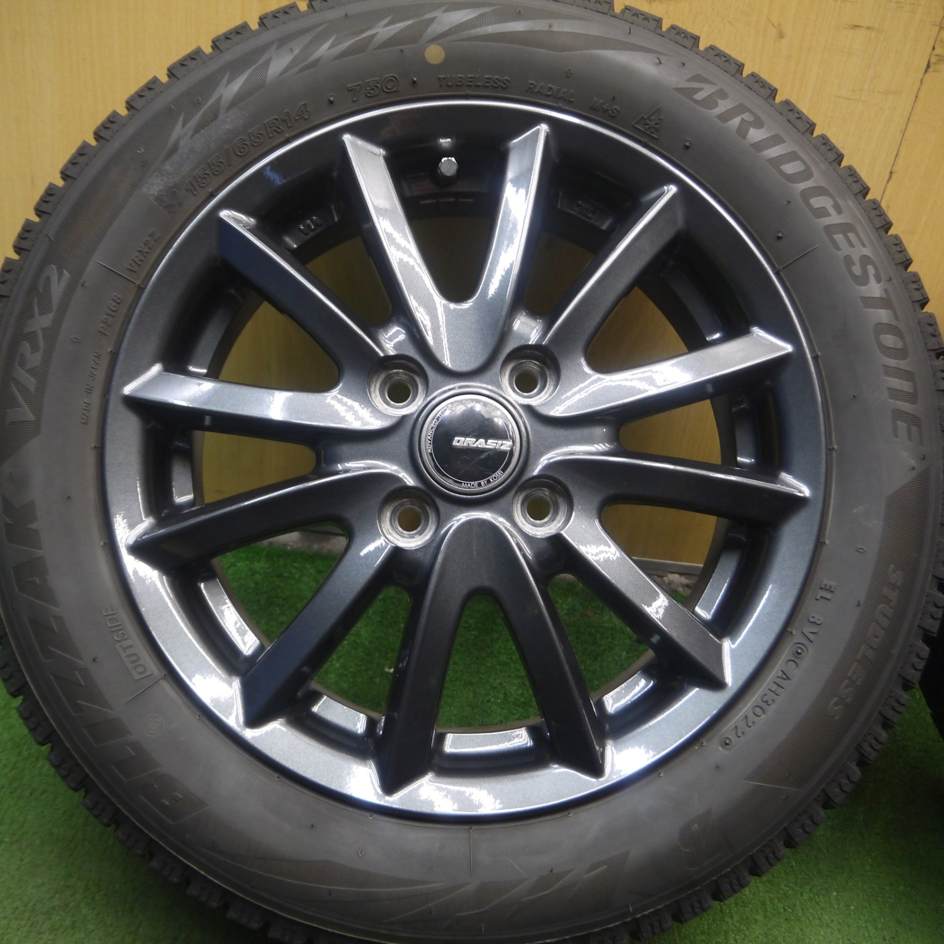 [送料無料] バリ溝!22年!キレイ!9分★スタッドレス 155/65R14 ブリヂストン ブリザック VRX2 DRASIZ KOSEI 光生 14インチ PCD100/4H★4052111Hス |
